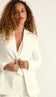 Blazer confeccionado em crepe de alfaiataria com forro. Possui modelagem ajustada e alongada, frente aberta com fechamento apenas por colchete de metal; a peça não possui lapela na gola, sendo ela reta e lisa; conta ainda com ombreiras para estruturar a silhueta, mangas longas, bolsos frontais embutidos e o corte clássico de alfaiataria que torna o modelo elegante e atemporal.