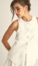 Blusa regata com forro estilo alfaiataria, confeccionada em poliviscose texturizada mais encorpada com aspecto de linho. Possui modelagem ajustada e alongada, decote redondo, fechamento frontal por botões forrados e recortes que modelam a peça e desenham a silhueta.