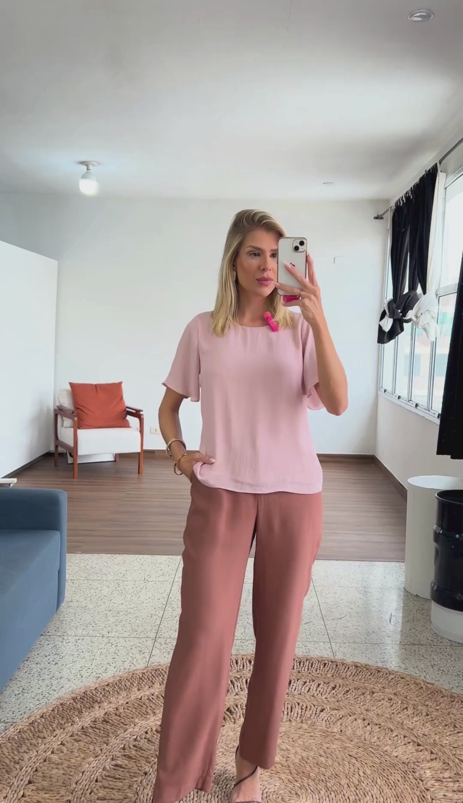 Blusa confeccionada em crepe leve. Possui tecido duplo na frente para não ficar transparente, modelagem soltinha, decote redondo e mangas curtas sino. A peça clássica e versátil que não pode faltar no seu guarda-roupa.