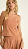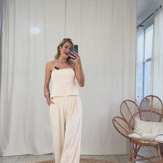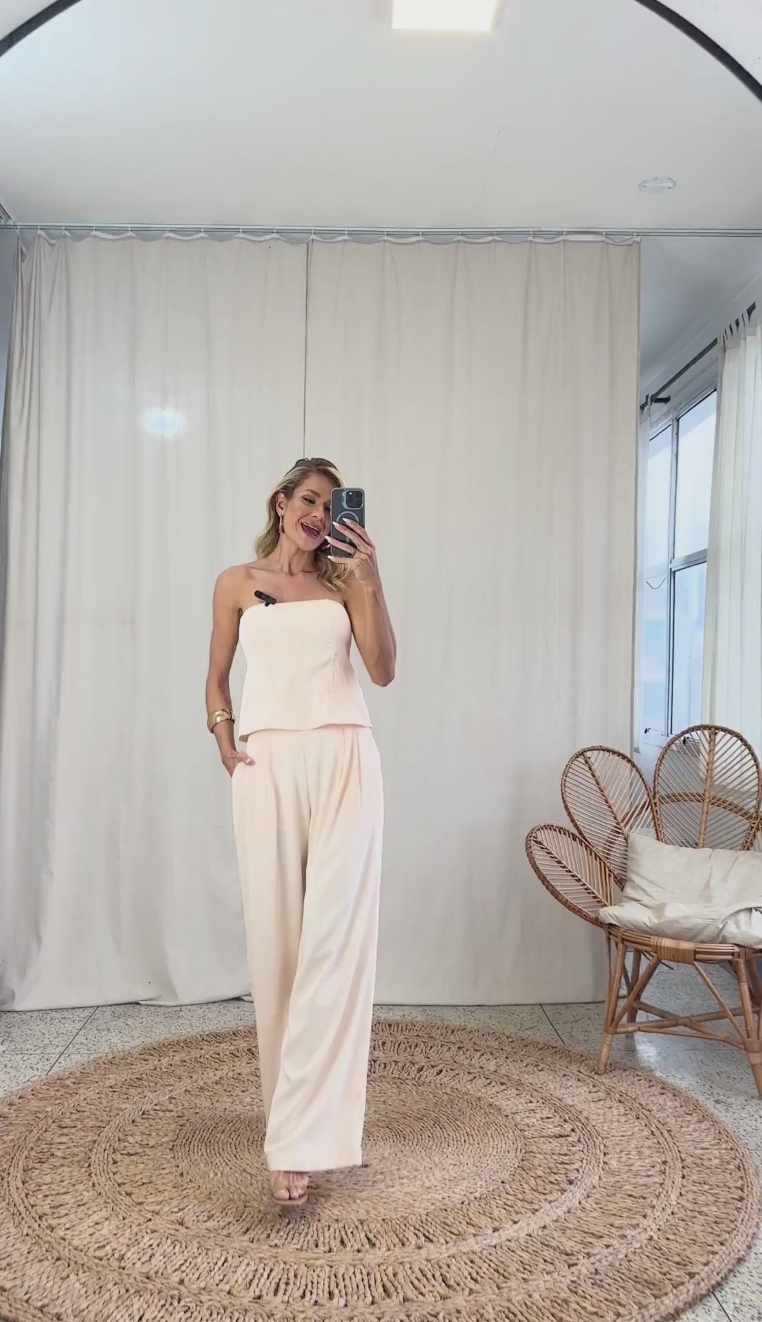 Blusa sem mangas confeccionada em crepe de alfaiataria leve com forro. Possui modelagem levemente ajustada, decote reto com elástico fino interno para mais segurança, recortes que modelam o corpo, detalhe de bolsinhos falsos frontais, lastex nas costas para melhor ajuste ao corpo e fendinha na barra das costas.