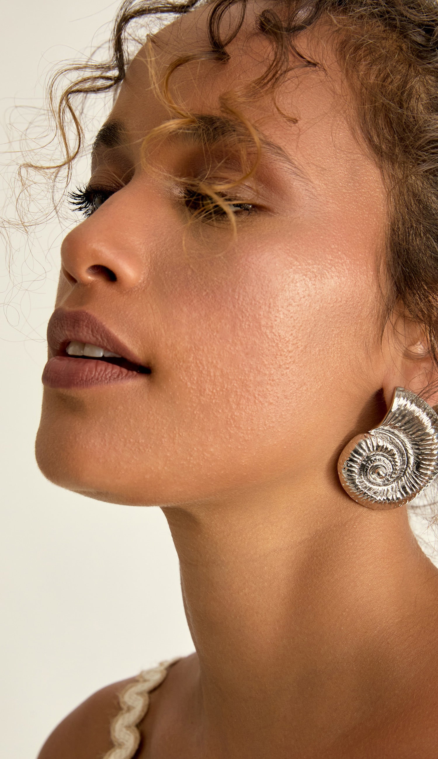 Brinco em metal de baixa fusão, uma liga de estanho com manganês, que garante leveza e maior resistência à oxidação. Possui um design inspirado em concha do mar; tarracha de borracha para maior firmeza e acabamento delicado, refletindo a elegância da Laguna. O acessório ideal para usar tanto de dia quanto a noite, trazendo frescor para qualquer look e um estilo atemporal.