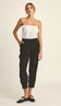 Calça carrot confeccionada em crepe de alfaiataria com forro na peça inteira. Possui modelagem clássica com pregas frontais e na barra que dão um volume muito charmoso, passantes no cós, bolsos faca laterais, bolsos chapados traseiros e fechamento frontal por zíper, botão interno e botão forrado.