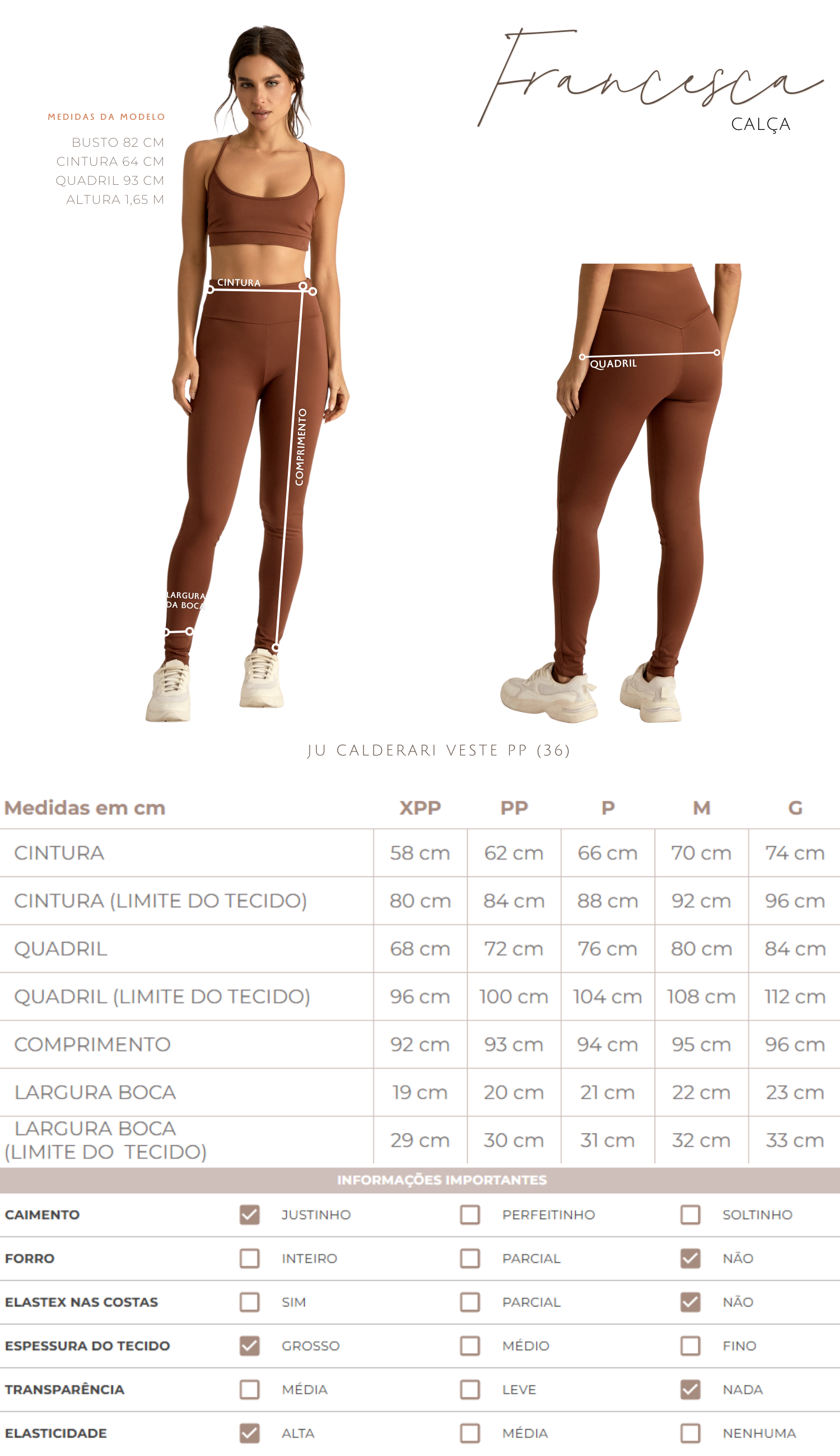 Calça legging lisa confeccionada em malha fit. Possui cintura alta e cós largo para melhor ajuste ao corpo e compressão, bolso funcional embutido na parte traseira do cós, para guardar pequenos objetos e recorte em V nessa região com efeito "empina bumbum" e detalhe frontal com a conchinha da Laguna em relevo estampada no mesmo tom da peça. O tecido possui uma ótima espessura, o que garante que a peça tenha a compressão na medida certa e que não fique transparente ao esticar. Perfeita para compor o look fitness com o conforto e a segurança que precisamos.