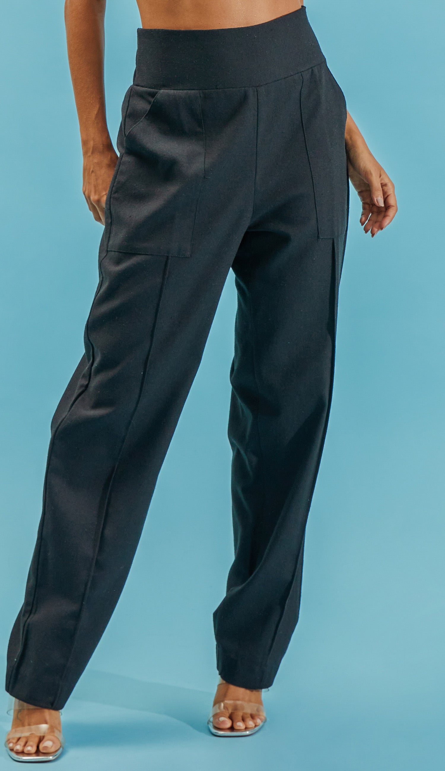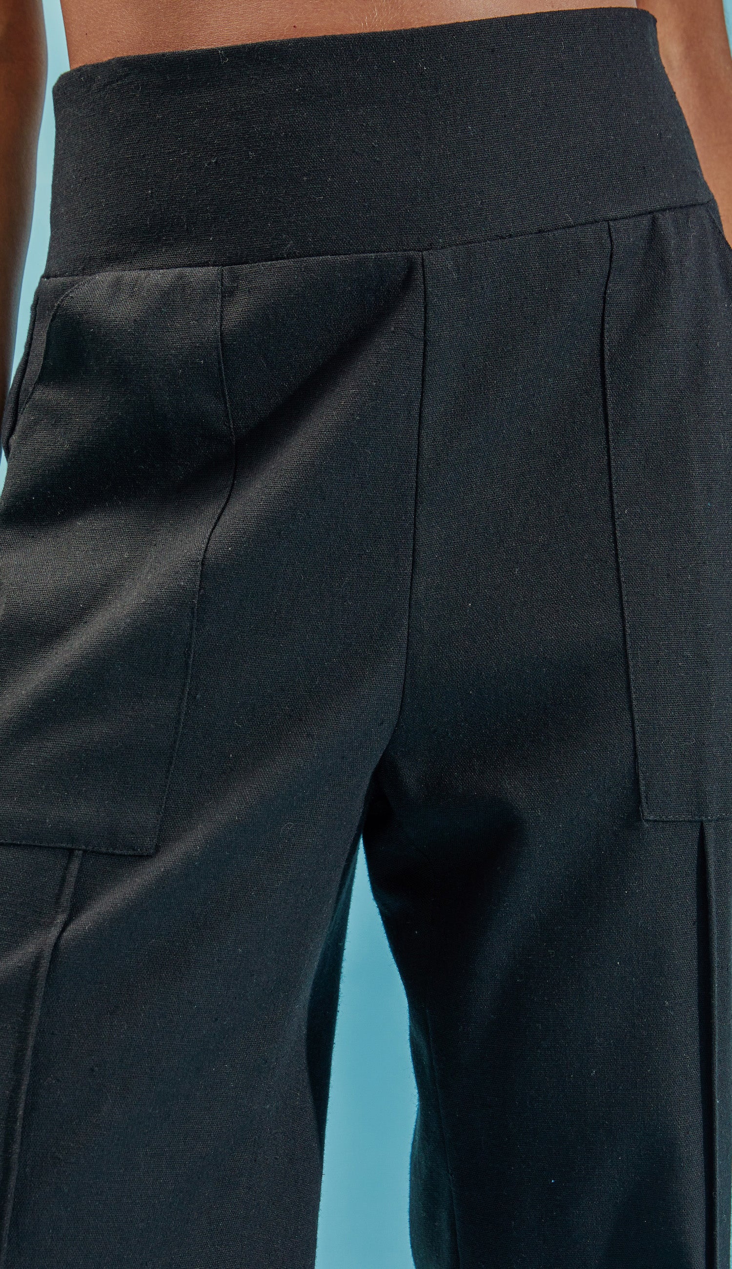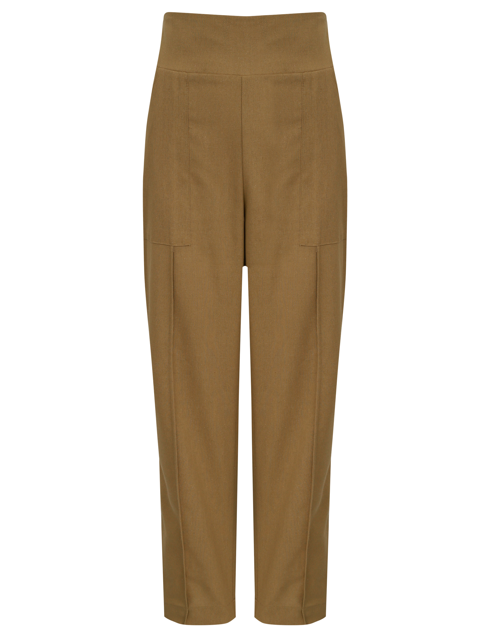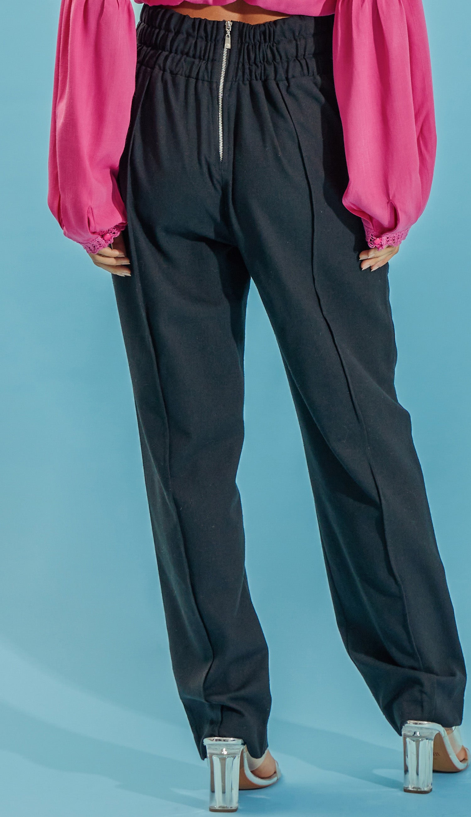 Calça confeccionada em linho. Possui modelagem ajustada de alfaiataria, cós largo, bolsos laterais, vincos frontais, elástico largo franzido no cós costas e fechamento traseiro por zíper de metal com pingente que possui o delicado detalhe da conchinha da Laguna gravado, o que dá um charme todo especial à peça.