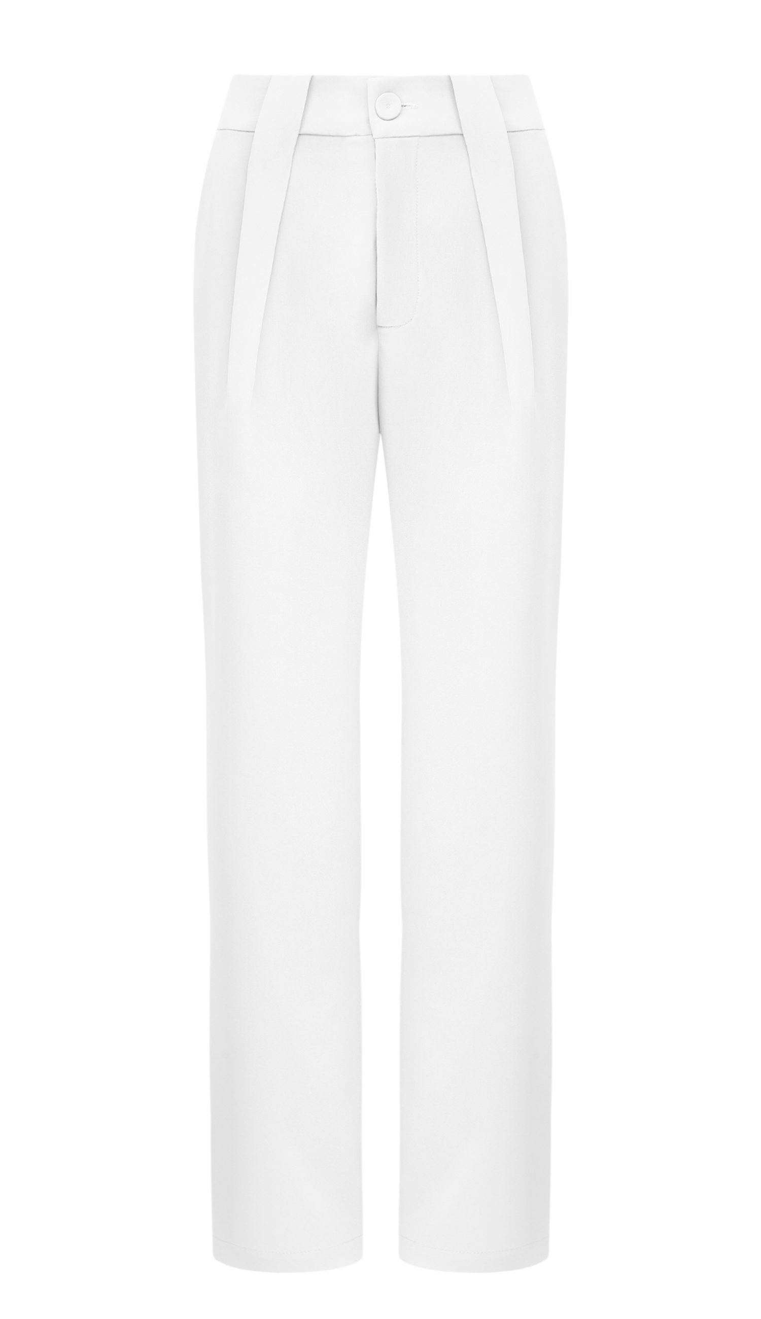 Calça confeccionada em crepe de alfaiataria. Possui fechamento frontal por zíper e botão forrado, passantes no cós, pregas para melhor caimento da peça, bolsos faca laterais, bolsos traseiros embutidos e pernas soltinhas.