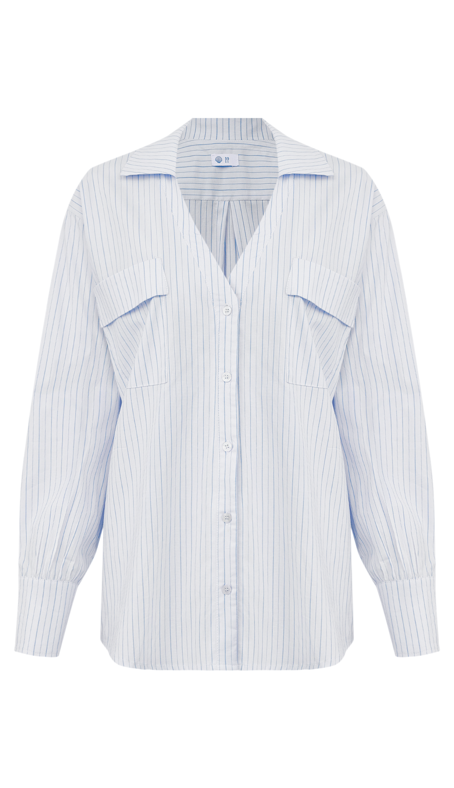 Camisa oversized confeccionada em tricoline de algodão risca de giz com elasticidade. Possui modelagem clássica mais soltinha e alongada, mangas longas com punhos largos, decote em V e lapela dobrada na gola, fechamento frontal e dos punhos por botões madrepérola, bolsos frontais amplos aplicados com lapela dobrada também, pala e prega nas costas para melhor ajuste ao corpo e facilitar os movimentos. O tecido é super macio, leve, fresquinho e tem uma ótima elasticidade, que garante um conforto incrível.