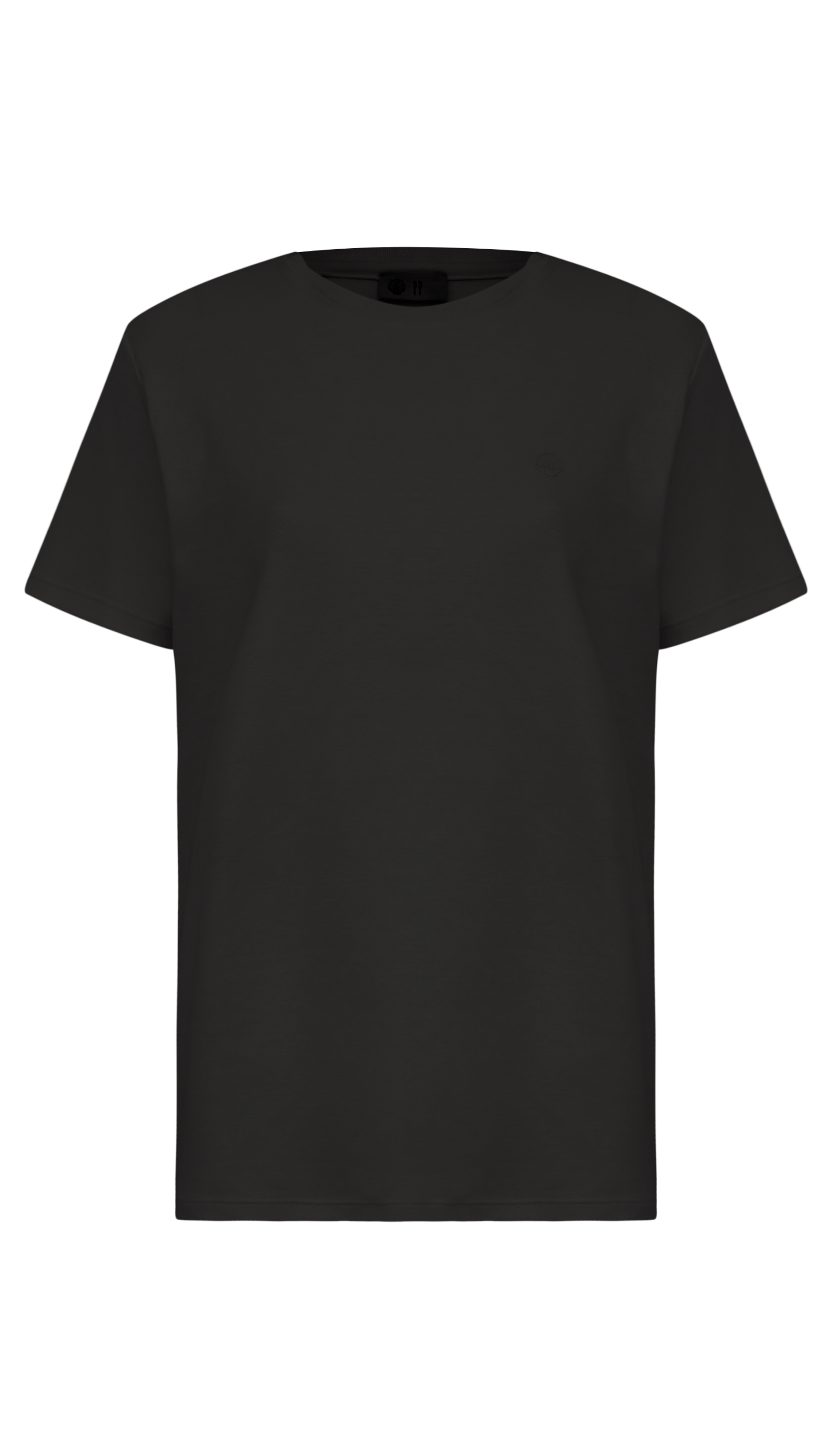 T-shirt slim confeccionada em malha de algodão egípcio. Possui modelagem reta alongada, mangas curtas, decote redondo com ribana e o detalhe charmoso da conchinha da Laguna em relevo estampada no mesmo tom da peça, na região do peito.