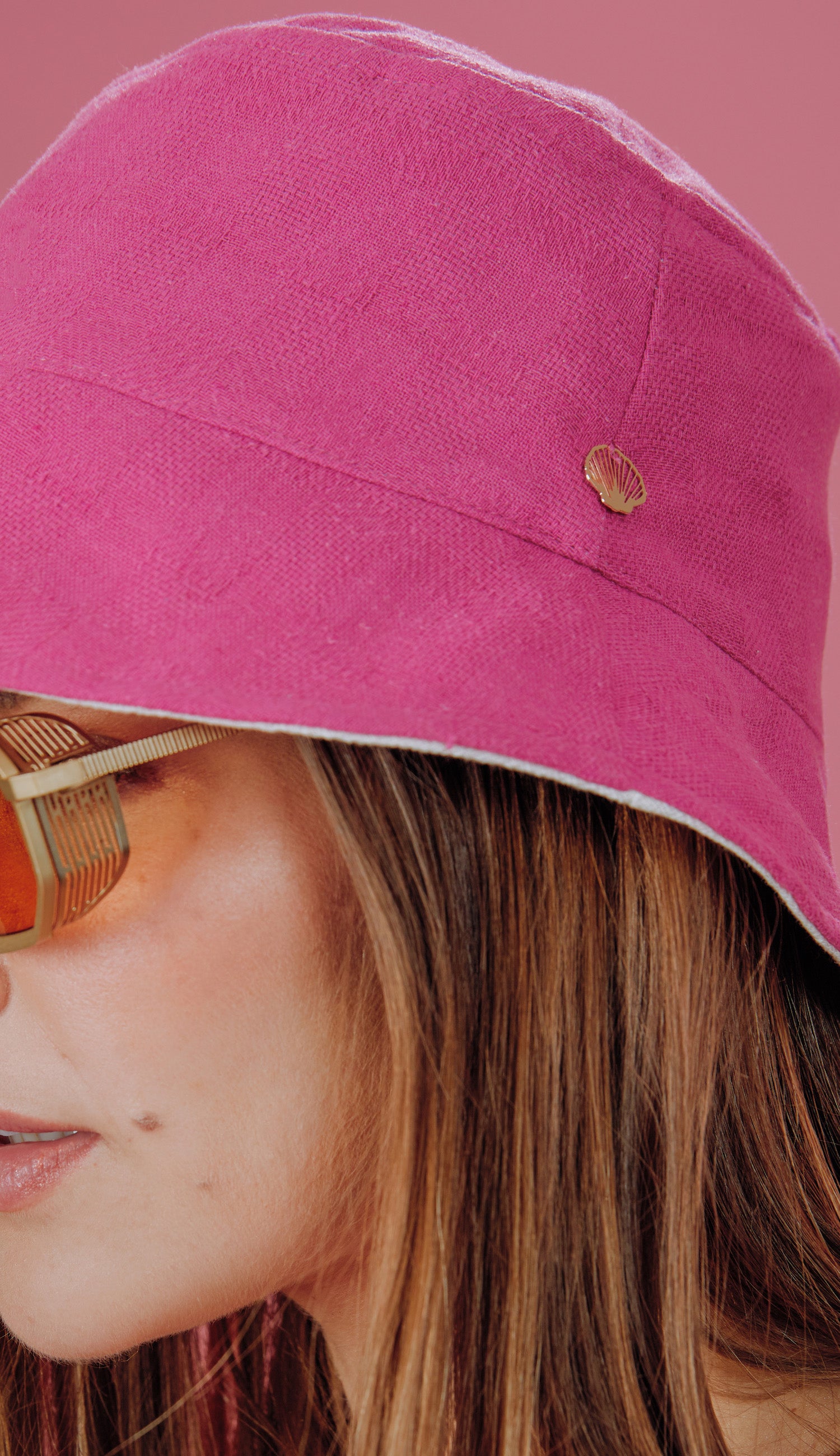 Chapéu bucket liso dupla face bicolor confeccionado em algodão com aspecto de linho e detalhe de plaquinha de metal no formato da concha da Laguna. Esse é o acessório do momento! Combina perfeitamente com o mood praiano, tanto para se proteger do sol à beira mar, quanto para criar looks leves e estilosos. Nosso best seller agora em uma modelagem menor, atendendo aos pedidos das nossas Laguna Lovers <3