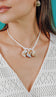Colar confeccionado em cordão com três conchas artificiais e fechamento por ponteiras, correntinha e fecho de metal.