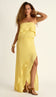 Recorte diagonal criando uma linda fenda lateral assimétrica