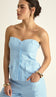 Conjunto confeccionado em linho com forro nas peças inteiras. A blusa é mais alongada e sem mangas; possui decote coração com silicone interno para maior segurança, recortes que modelam a peça, elástico interno nas costas, fechamento lateral por zíper invisível, detalhe frontal de botões forrados de enfeite e bolsos com lapelas. A calça é pantalona e possui fechamento frontal por zíper invisível, recortes frontais na vertical que dão uma elegância a mais na peça e bolsos laterais com lapela dobrada.