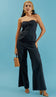 Conjunto confeccionado em linho. A blusa é mais alongada, não possui mangas e conta com forro, decote coração com silicone interno para maior segurança, recortes que modelam a peça, elástico interno nas costas, fechamento frontal por botões forrados e bolsos com lapelas. A calça é pantalona e possui fechamento frontal por zíper invisível, riscas frontais que dão uma elegância a mais na peça e bolsos laterais com lapela dobrada.