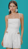 Conjunto confeccionado em crepe de alfaiataria. O top possui decote reto, tecido duplo no busto para não ficar transparente, alcinhas reguláveis e lastex franzido nas costas para melhor ajuste ao corpo. O shorts é ajustado na cintura e soltinho nas pernas, possui forro, fechamento traseiro por zíper invisível, bolsos laterais, pregas frontais e recortes vazados na frente, logo abaixo do cós, com aplicação de correntinhas de metal penduradas.