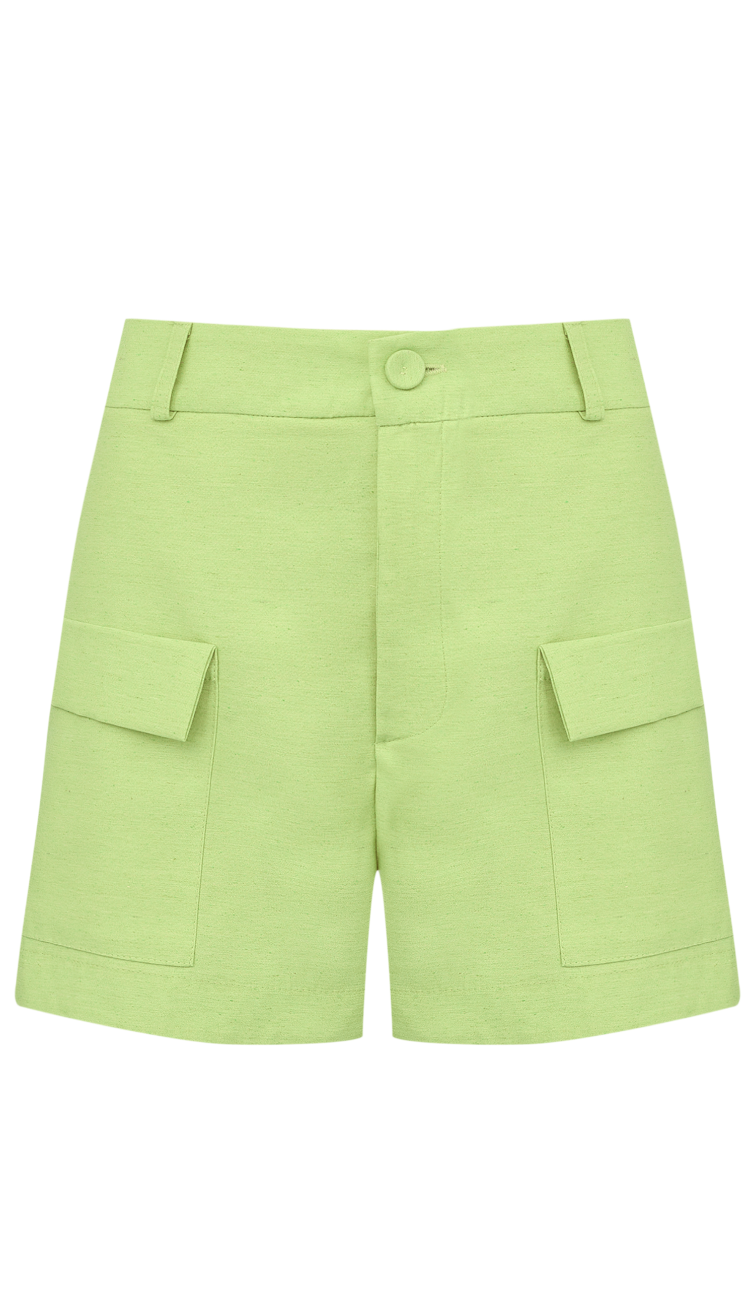 Conjunto com forro, confeccionado em linho misto revestido com sutil padronagem 'rajada'. A blusa não tem mangas e possui decote reto com silicone elástico interno para maior sustentação, fechamento frontal por botões forrados, recortes no corpo da peça que desenham a silhueta e ajustam ao corpo, detalhe de bolsos falsos frontais com lapela, fendinhas nas laterais e recorte arredondado na parte da frente das barras. O shorts possui fechamento frontal por zíper e botão forrado, passantes no cós, charmosos bolsos amplos aplicados na parte da frente com lapela dobrada e pernas soltinhas. O lindo tecido deste conjunto une a sofisticação do linho, o conforto do algodão e o frescor da viscose, garantindo versatilidade, por ser a escolha certa para as mais diferentes ocasiões.
