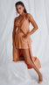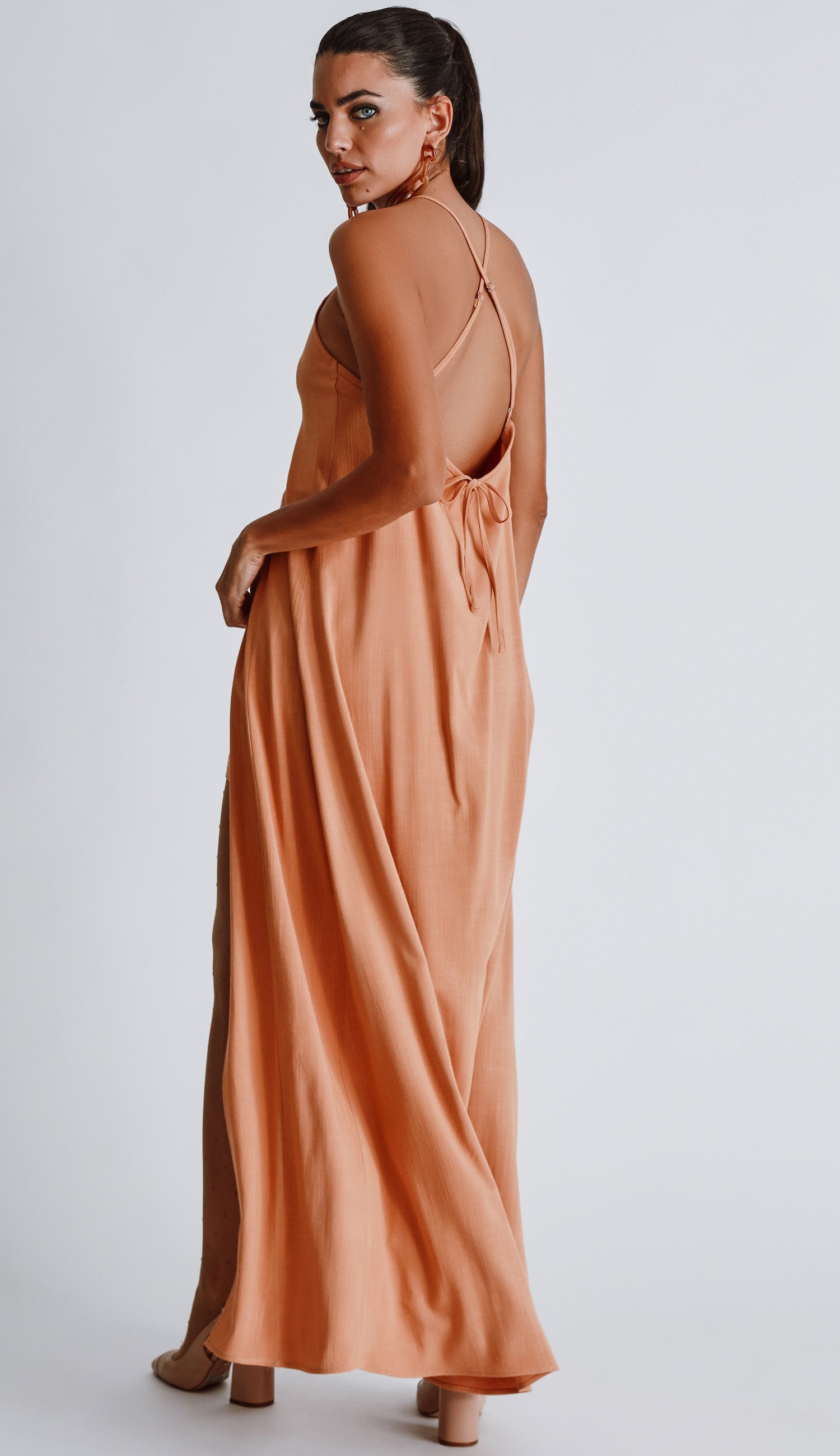 Conjunto confeccionado em viscose com toque e aspecto de linho. O vestido é longo e possui decote em V com pala e preguinhas, alcinhas reguláveis cruzadas nas costas, tirinha embutida nas costas para ajuste e amarração, fechamento frontal por botõezinhos esmaltados somente no busto e toda a frente com uma linda abertura que deixa a peça de baixo à mostra. O shorts possui forro, pernas soltinhas, bolsos laterais e fechamento lateral por zíper invisível.