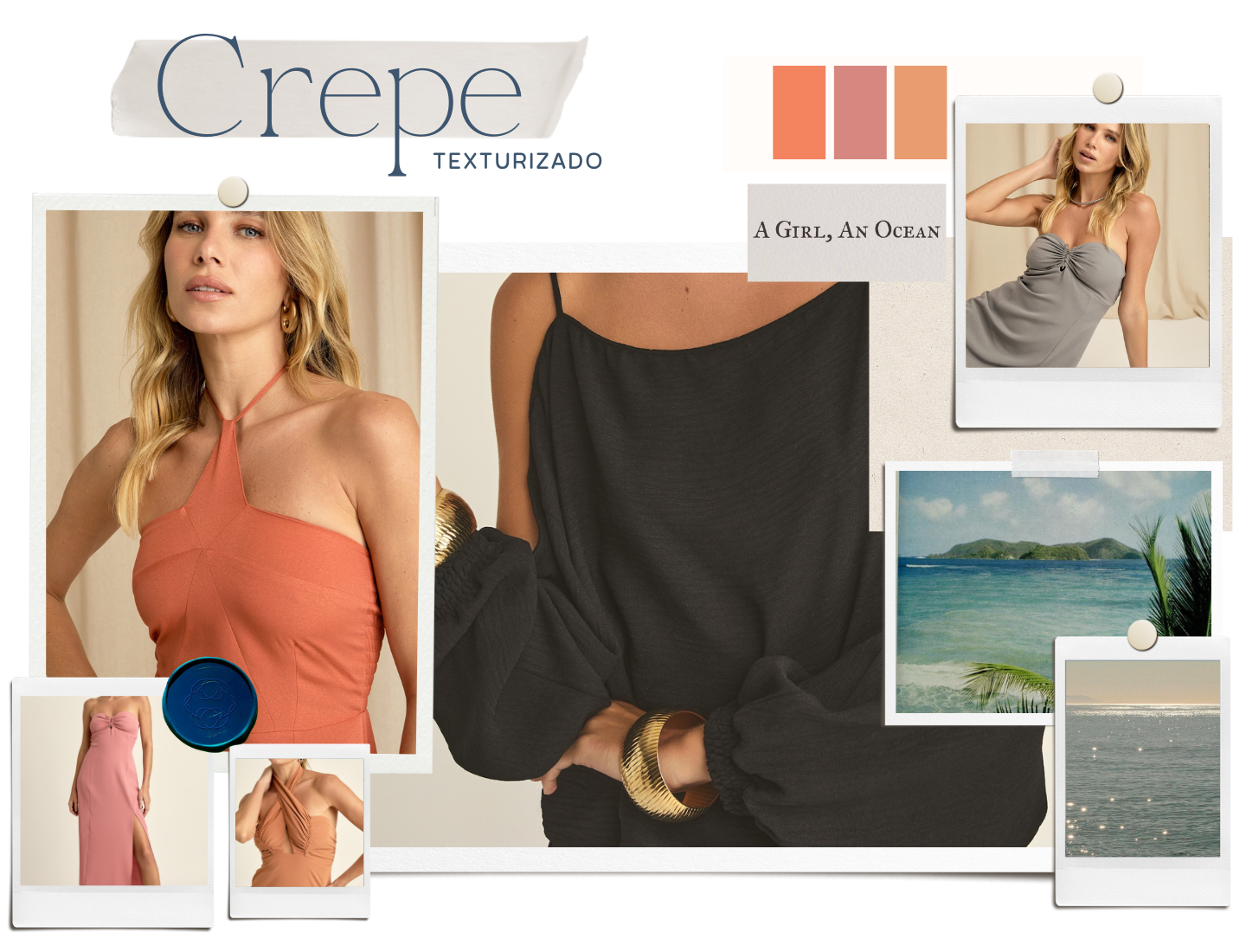 Conjunto confeccionado em crepe texturizado com aspecto amassadinho. A camisa possui gola em V com franzido e pala na vista; fechamento frontal por botões forrados e mangas longas com duas camadas de lastex franzido, deixando-as levemente bufantes. O shorts possui forro, modelagem um pouco mais sequinha pra garantir o caimento perfeito da camisa e fechamento por zíper invisível na lateral.