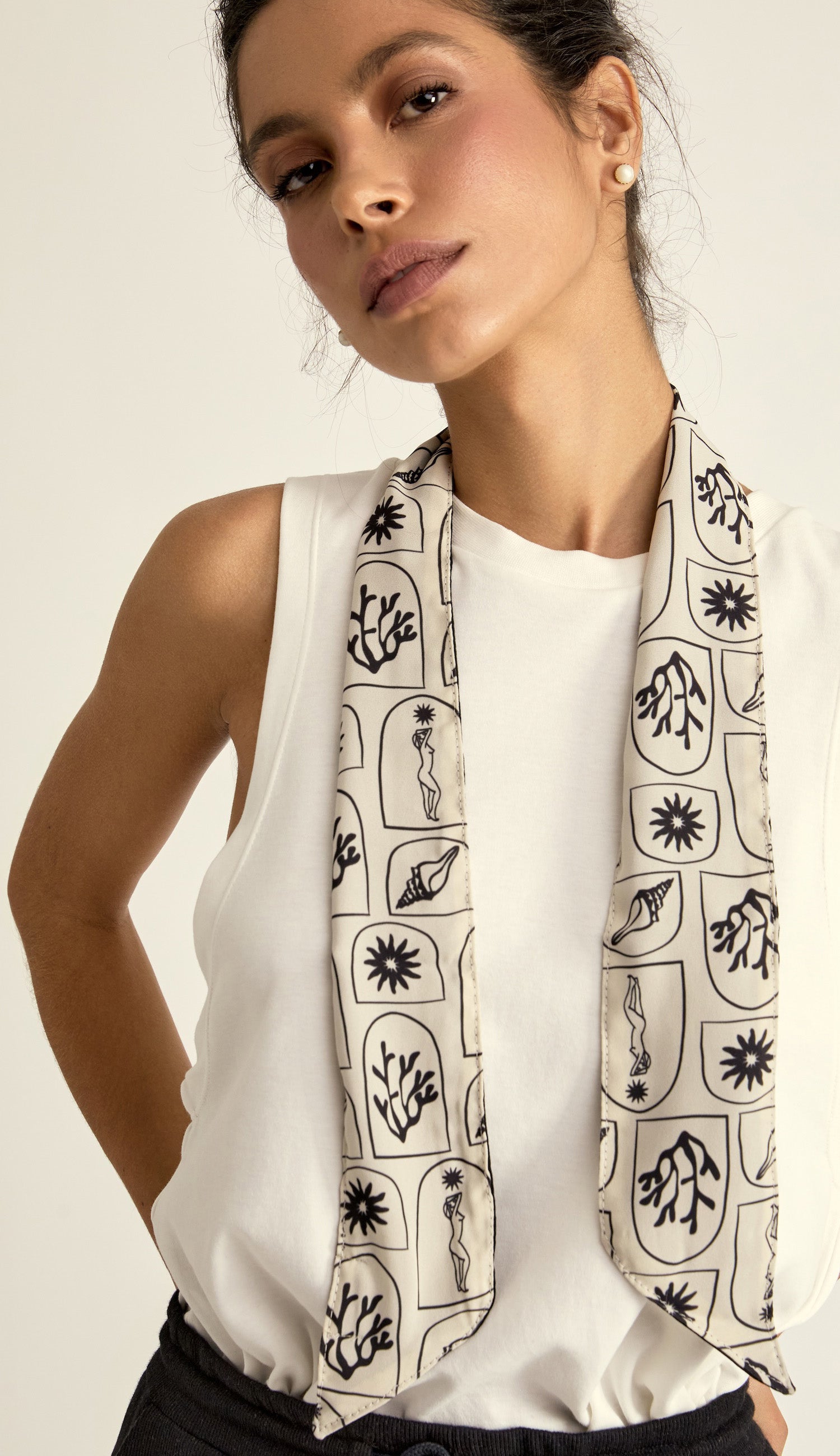 Faixa confeccionada em crepe com estampa exclusiva da Laguna. A faixa é comprida para amarrar de diversas formas e é no modelo dupla face, tendo um lado com estampa e o outro preto, permitindo o uso dos dois lados. Acessório muito versátil que pode ser usado na cabeça, compondo penteados, no pescoço, na bolsa, etc. Esse é o detalhe super charmoso que faltava para dar mais personalidade ao seu look.