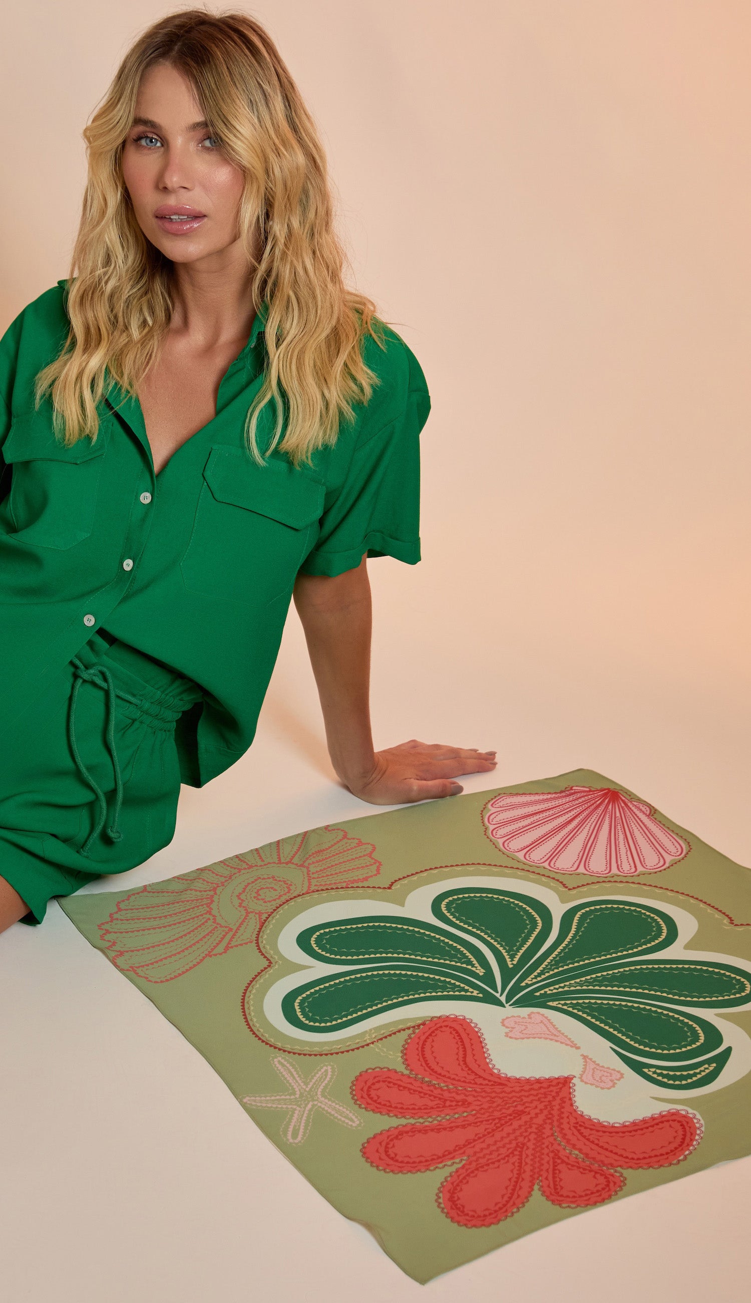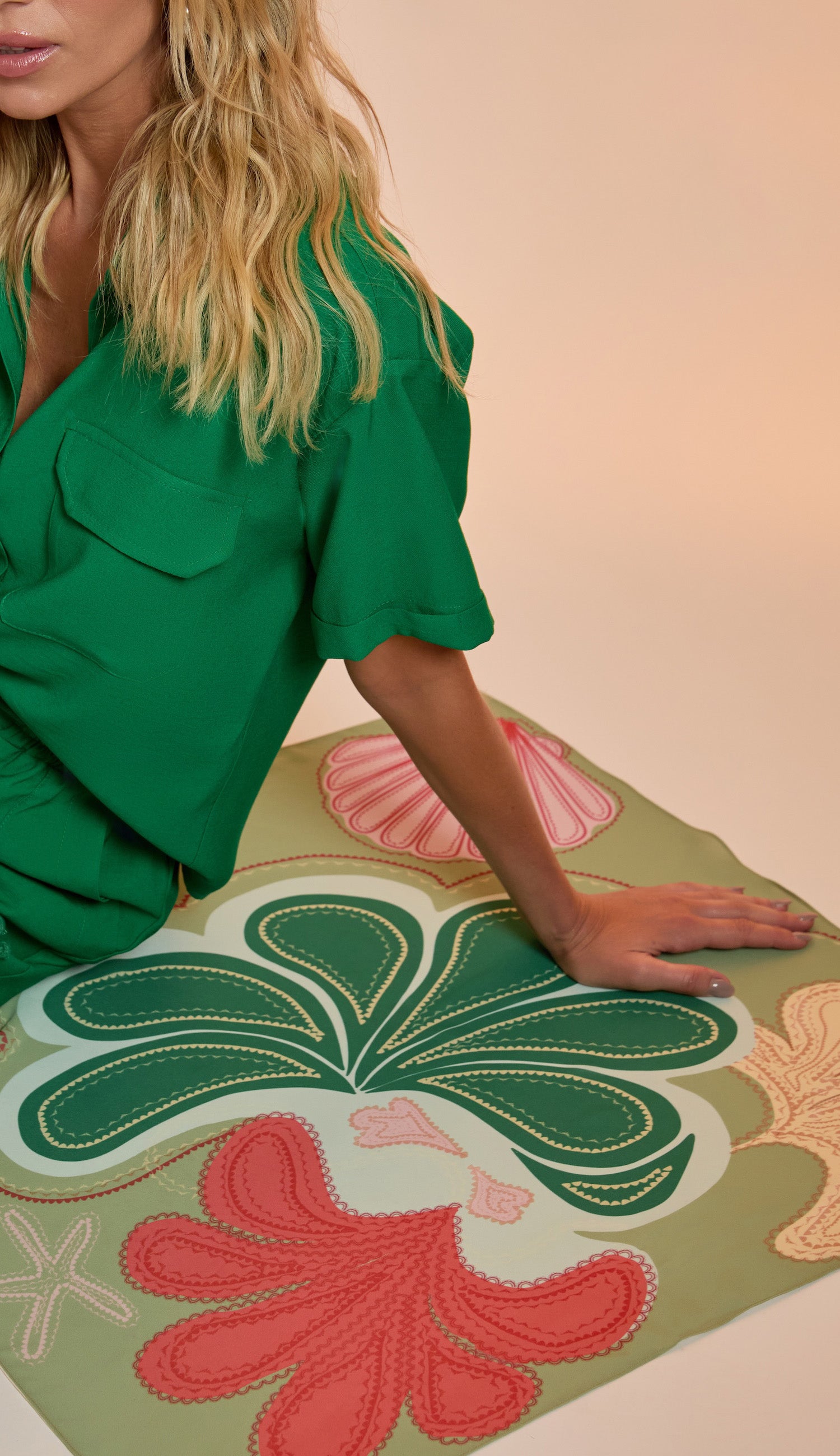 Lenço quadrado confeccionado em crepe com estampa exclusiva da Laguna. Possui um tecido leve e maleável que permite diversos tipos de amarração para ser utilizado de diferentes formas: no pescoço, na cabeça, em penteados, na bolsa, como top, etc. Esse acessório é o maior aliado para qualquer composição de look em todas as ocasiões, além de ser uma peça atemporal que está super em alta.