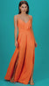 Macacão pantalona confeccionado em crepe com forro. Possui decote em V, alcinhas compridas para ajuste e amarração nas costas, busto com recorte e pregas, seguido de pala e preguinhas nas pernas também, fendas frontais e fechamento traseiro por zíper invisível.