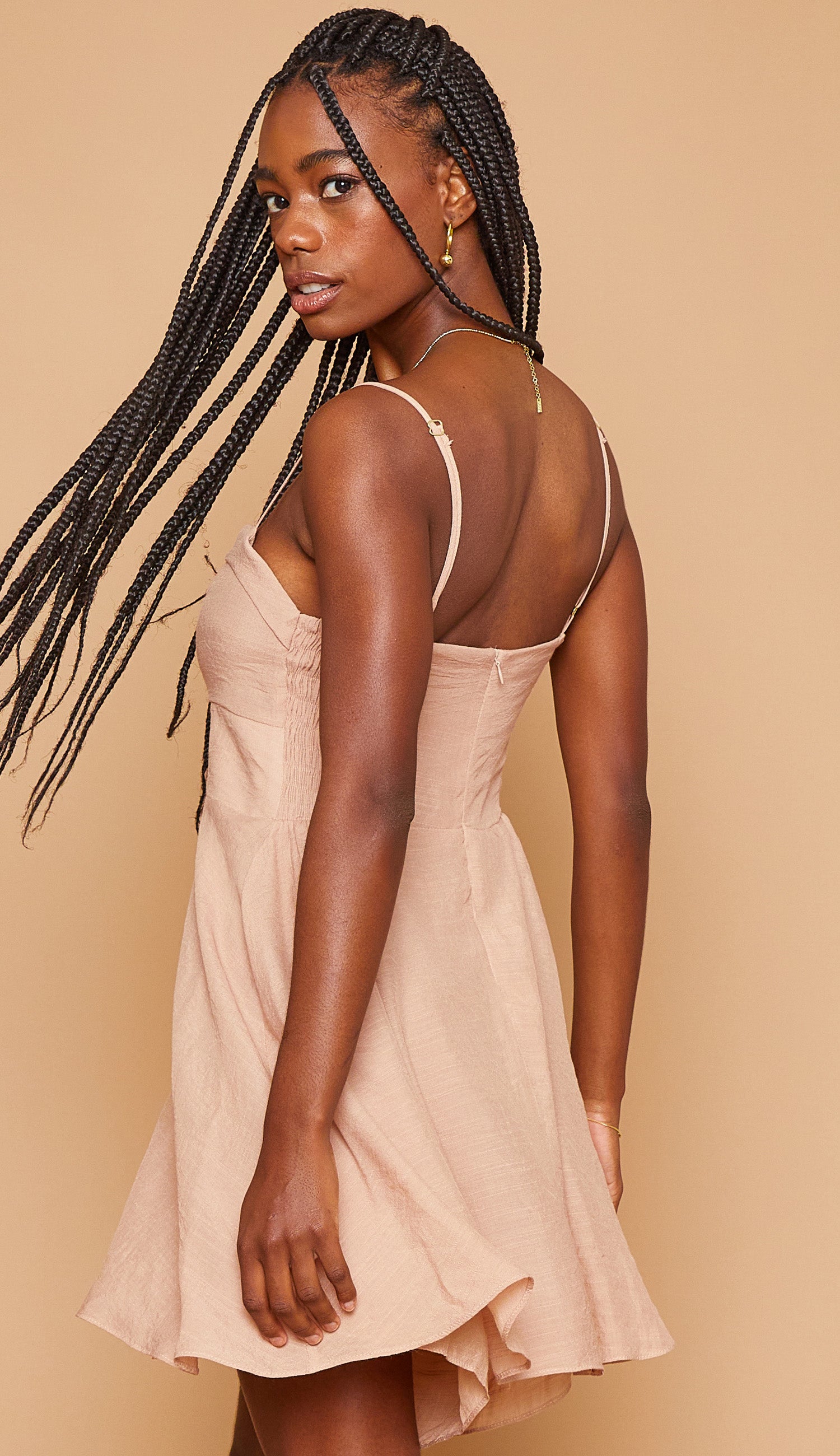 Macaquinho com forro confeccionado em poliviscose texturizado com aparência de linho. Possui alcinhas reguláveis, decote coração, franzidinhos, pala abaixo do busto, lastex franzido nas laterais para maior conforto, fechamento traseiro por zíper invisível e saia sobreposta.
