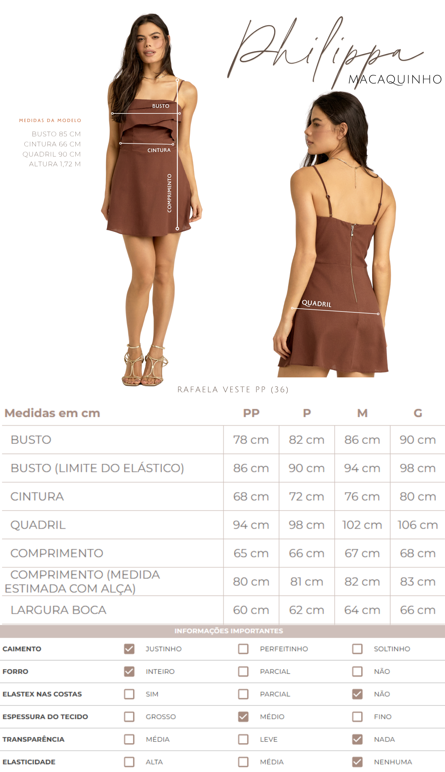 Fechamento: Zíper traseiro em metal com pingente Laguna.