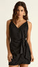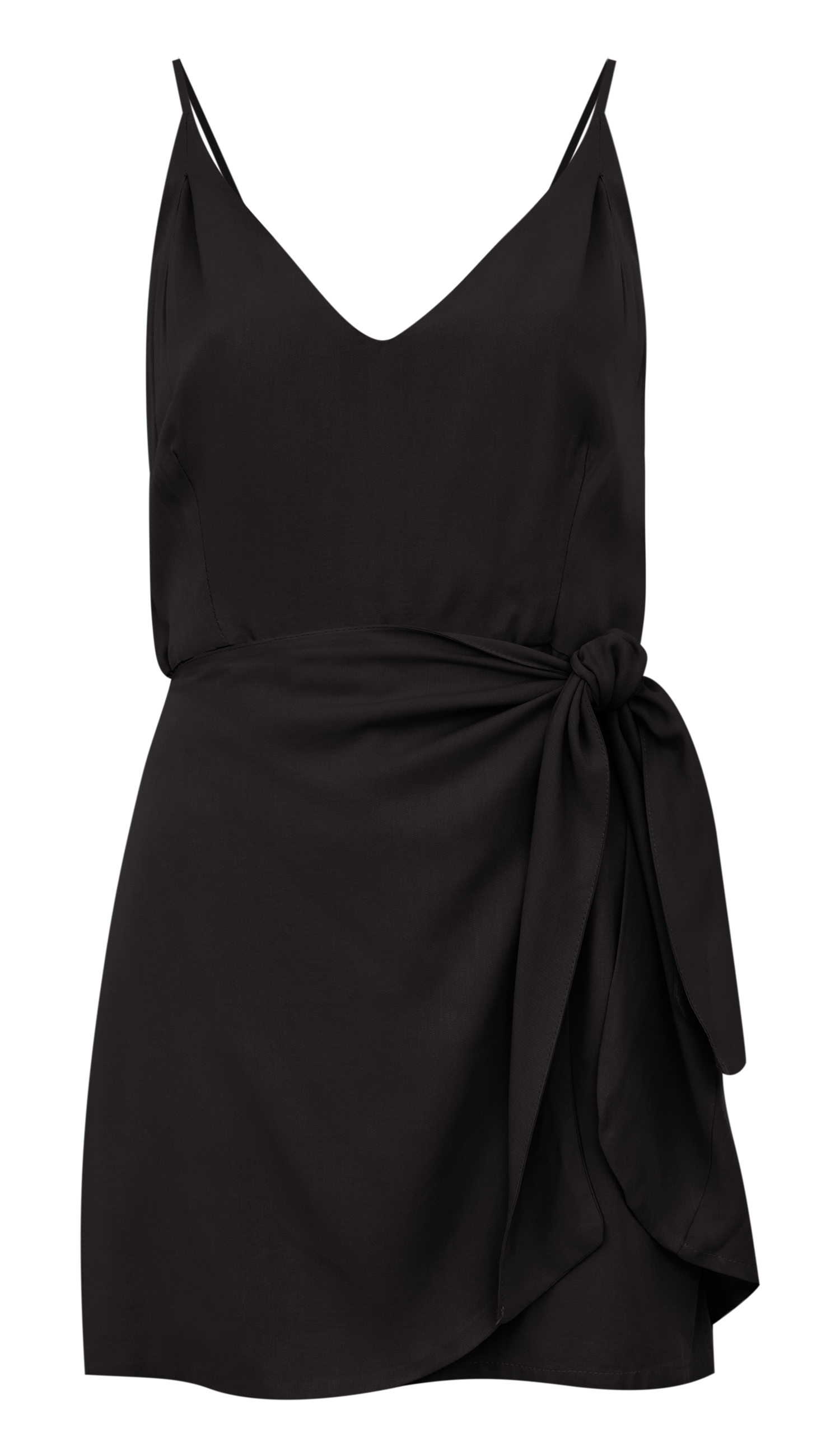 Macaquinho confeccionado em viscose twill. Possui decote em V com tecido duplo no busto para não ficar transparente, alcinhas reguláveis, sobreposição fixa na cintura para amarração frontal, parecendo uma sainha no estilo envelope e fechamento traseiro por zíper invisível.