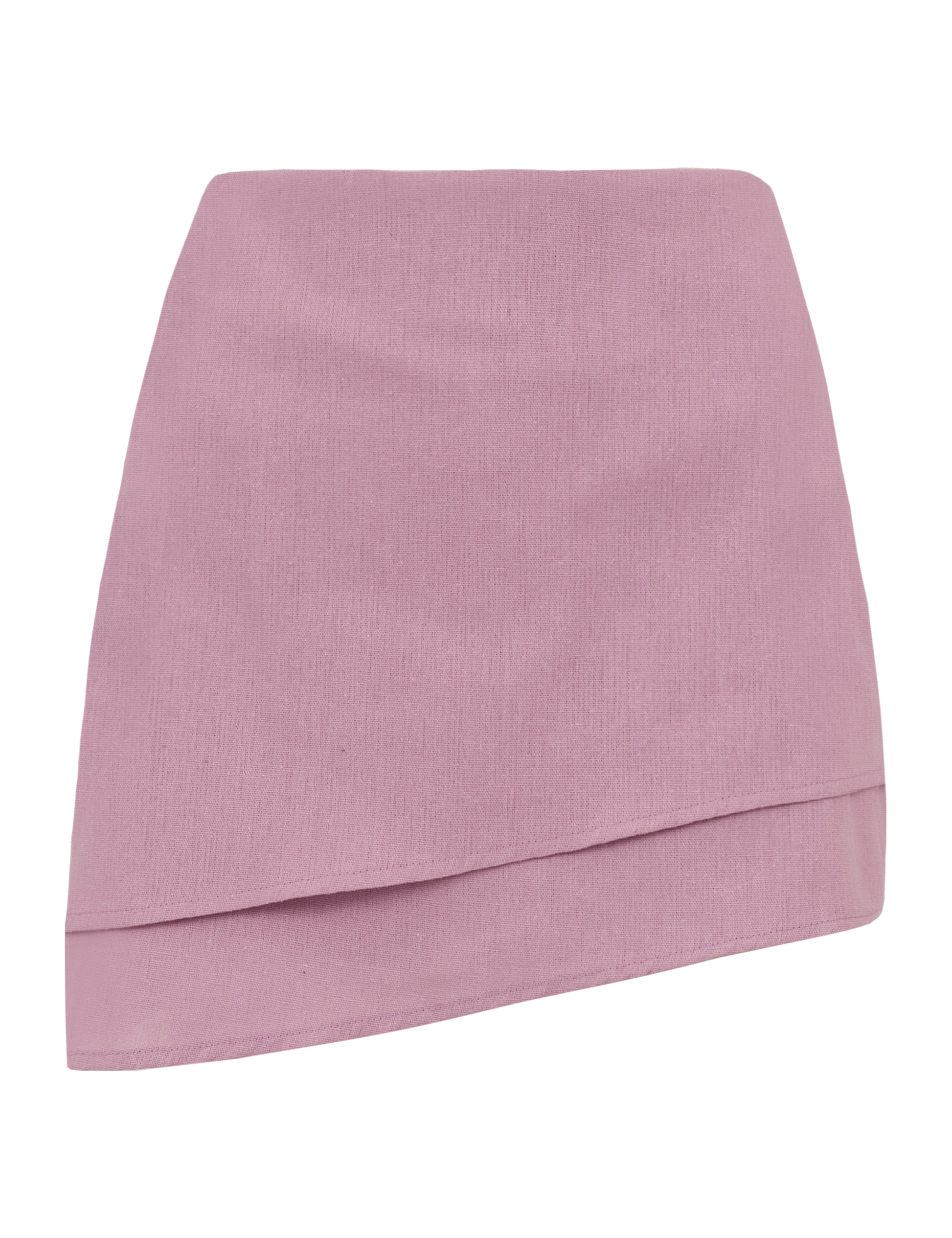 Shorts saia confeccionado em linho. Possui modelagem ajustada, duas camadas sobrepostas com barra assimétrica e fechamento traseiro por zíper de metal com pingente que tem o delicado detalhe da conchinha da Laguna gravado no metal, o que dá um charme todo especial à peça.