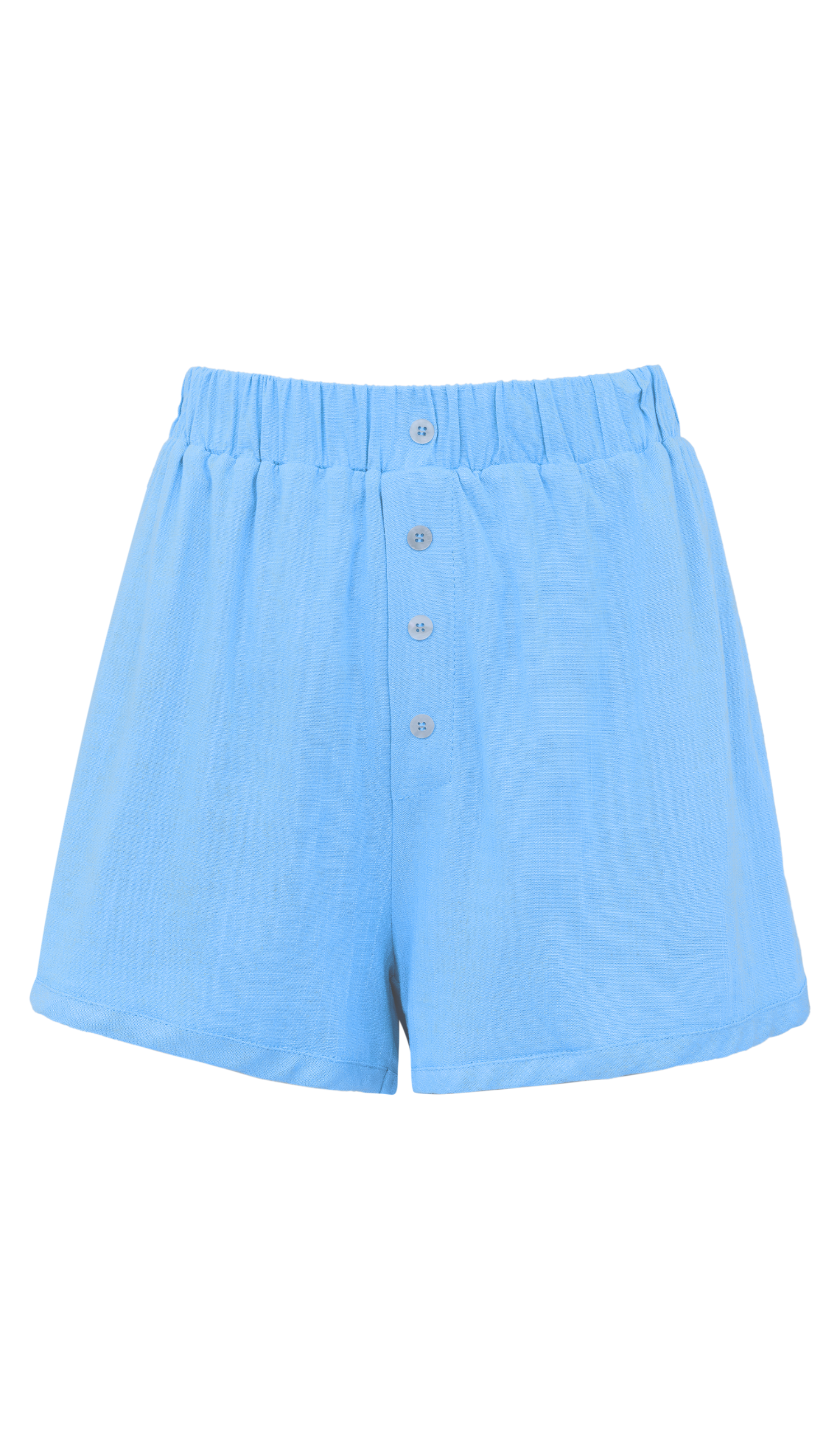 Shorts com forro, confeccionado em viscose texturizada com aspecto de linho. Possui elástico mais grosso franzido no cós, modelagem soltinha e detalhe frontal de botõesinhos em madrepérola.