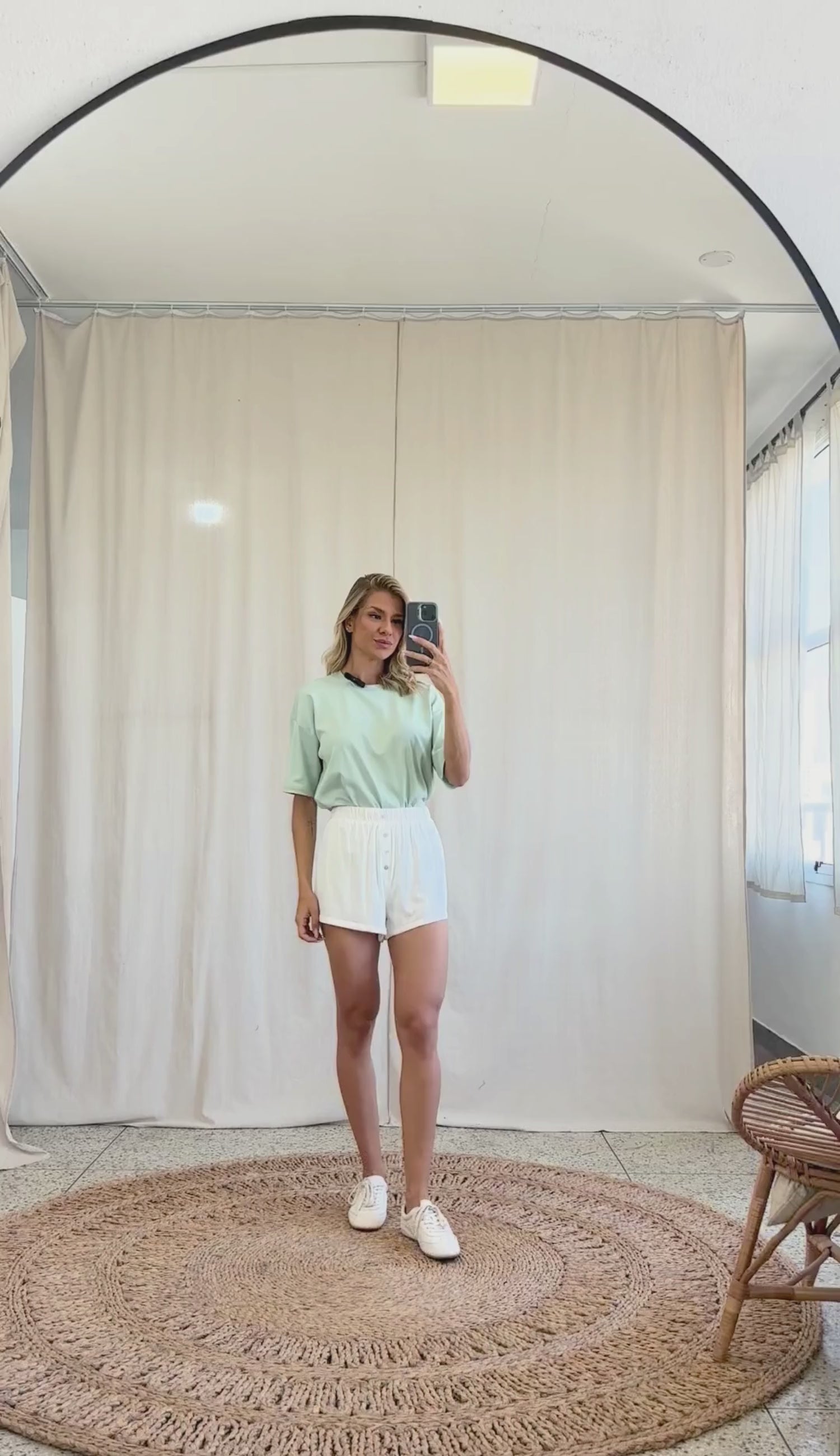 Praticidade e Caimento: Proporciona um caimento fluido e tem uma textura natural que valoriza o visual descomplicado.