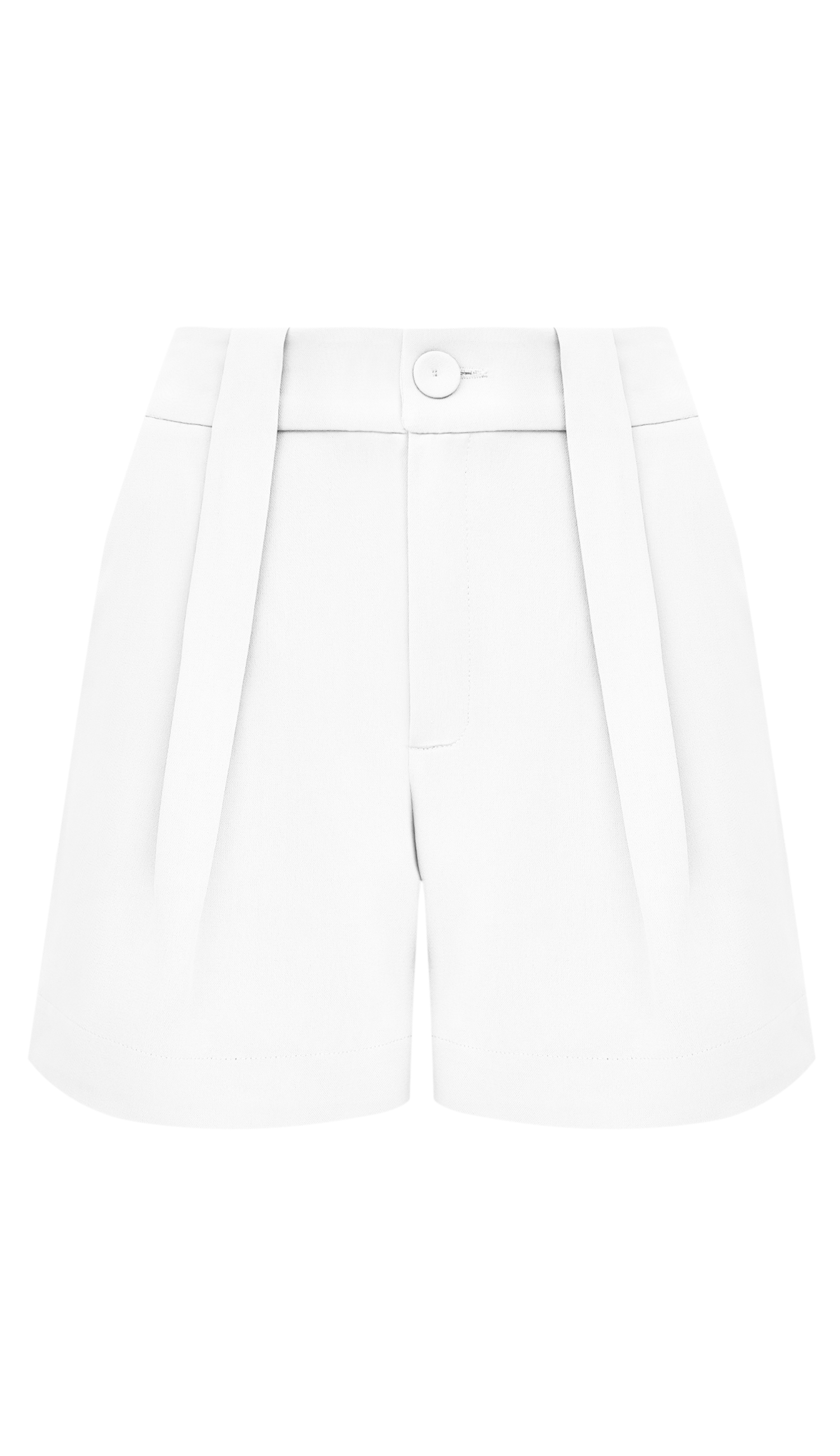 Shorts confeccionado em crepe de alfaiataria. Possui modelagem sotinha com cintura alta, pregas frontais partindo do cós, bolsos faca laterais e traseiros embutidos e fechamento frontal por zíper e botão forrado.