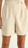 Shorts compridinho, estilo bermuda, confeccionado em linho com forro. Possui modelagem clássica de alfaiataria mais soltinho e comprido, fechamento frontal por ziper, botão interno e botão forrado deslocado, pregas frontais que desenham a silhueta, passantes no cós, bolsos faca laterais e bolsos falsos traseiros. O linho é leve e natural e traduz o equilíbrio entre sofisticação e conforto. Uma peça que respira elegância e atravessa o tempo com beleza.