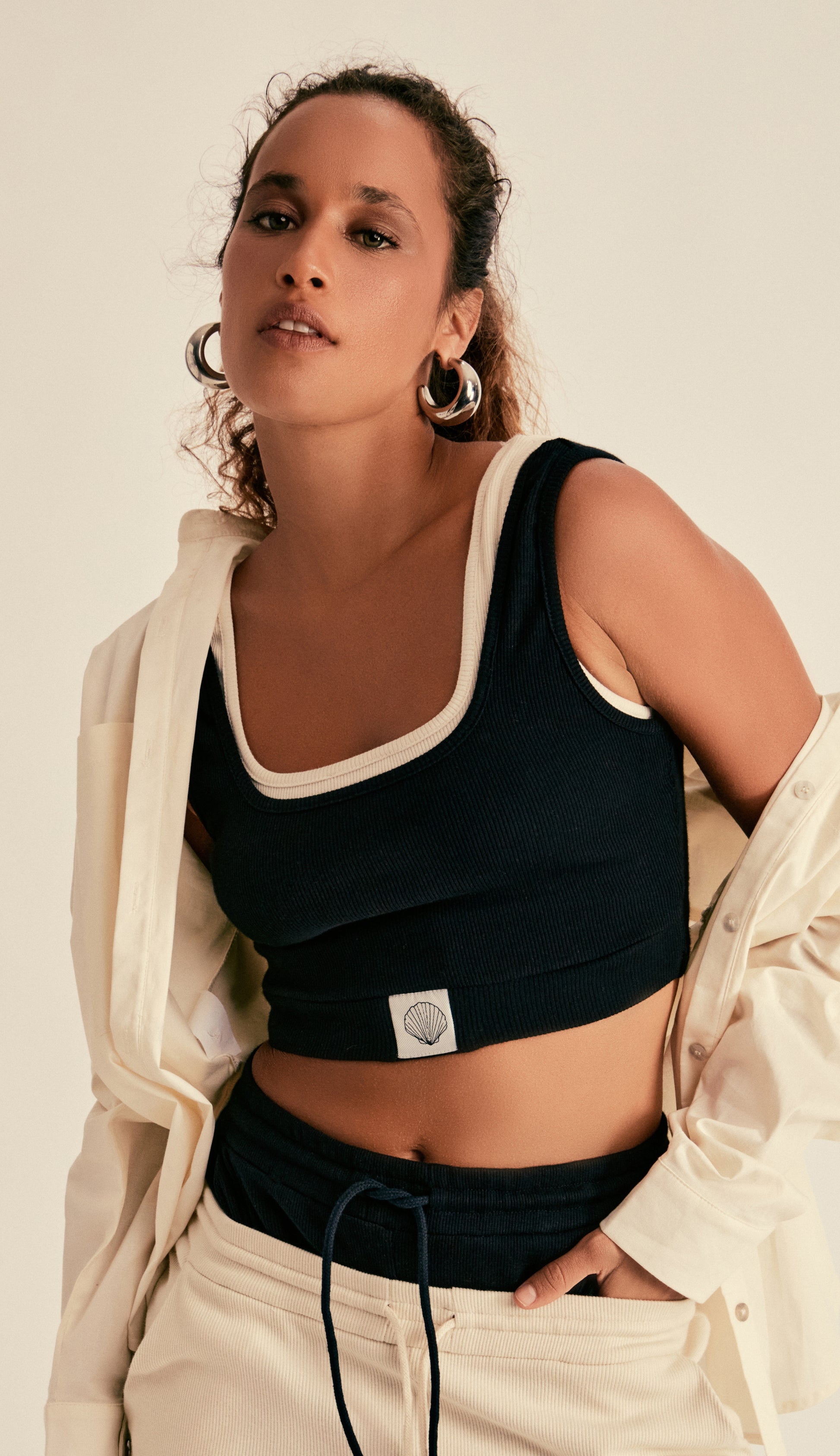 Top fit confeccionado em malha canelada de algodão. Possui decote em U frente e costas, alças larguinhas, acabamentos em viés no mesmo tecido e pala frontal abaixo do busto com o detalhe charmoso de aplicação da etiqueta bordada com logo da Laguna. O tecido é leve e macio, perfeita para compor o look fitness com o conforto e a segurança que precisamos para o treino. Essa é uma peça versátil e estilosa, que funciona tanto na academia quanto em looks casuais com uma pegada athleisure.