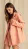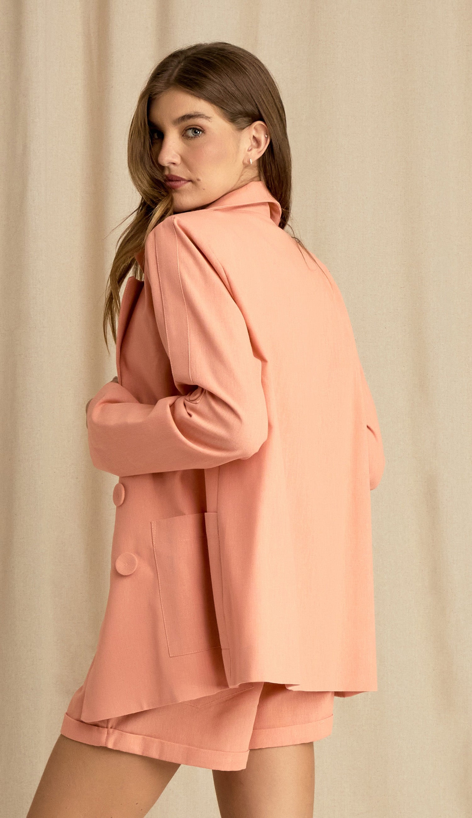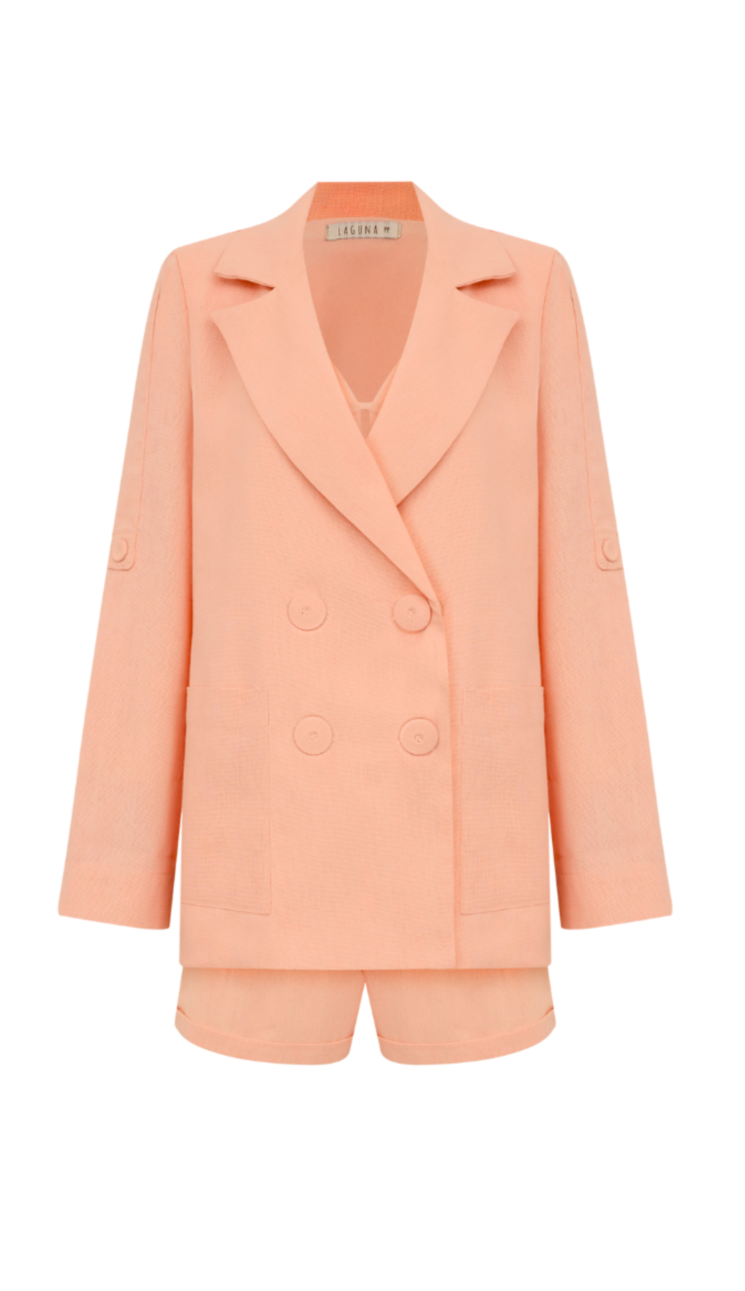 Trijunto confeccionado em linho com forro. O cropped possui alças finas reguláveis, recortes no busto para melhor ajuste e lastex e botões forrados nas costas. O blazer é oversized com a frente transpassada com 4 botões e o shorts é estilo alfaiataria com bolsos, botão forrado e barra dobrada. Despojado e com estilo praiano, nosso trijunto de linho é escolha certa para curtir os melhores momentos com a brisa do mar.