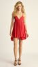 Vestido curto confeccionado em crepe leve texturizado com forro. Possui decote em V, alcinhas duplas compridas para ajuste e amarração cruzadas nas costas, modelagem império com elástico interno logo abaixo do busto e saia bem ampla e fluida.