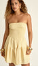Vestido curto com forro na saia; confeccionado em crepe texturizado com aspecto de linho. Não possui mangas e conta com decote reto, corpo da peça todo em lastex e saia evasê com recortes franzidos no estilo 'três marias'. Modelo perfeito para o verão; confortável, leve e fresquinho.