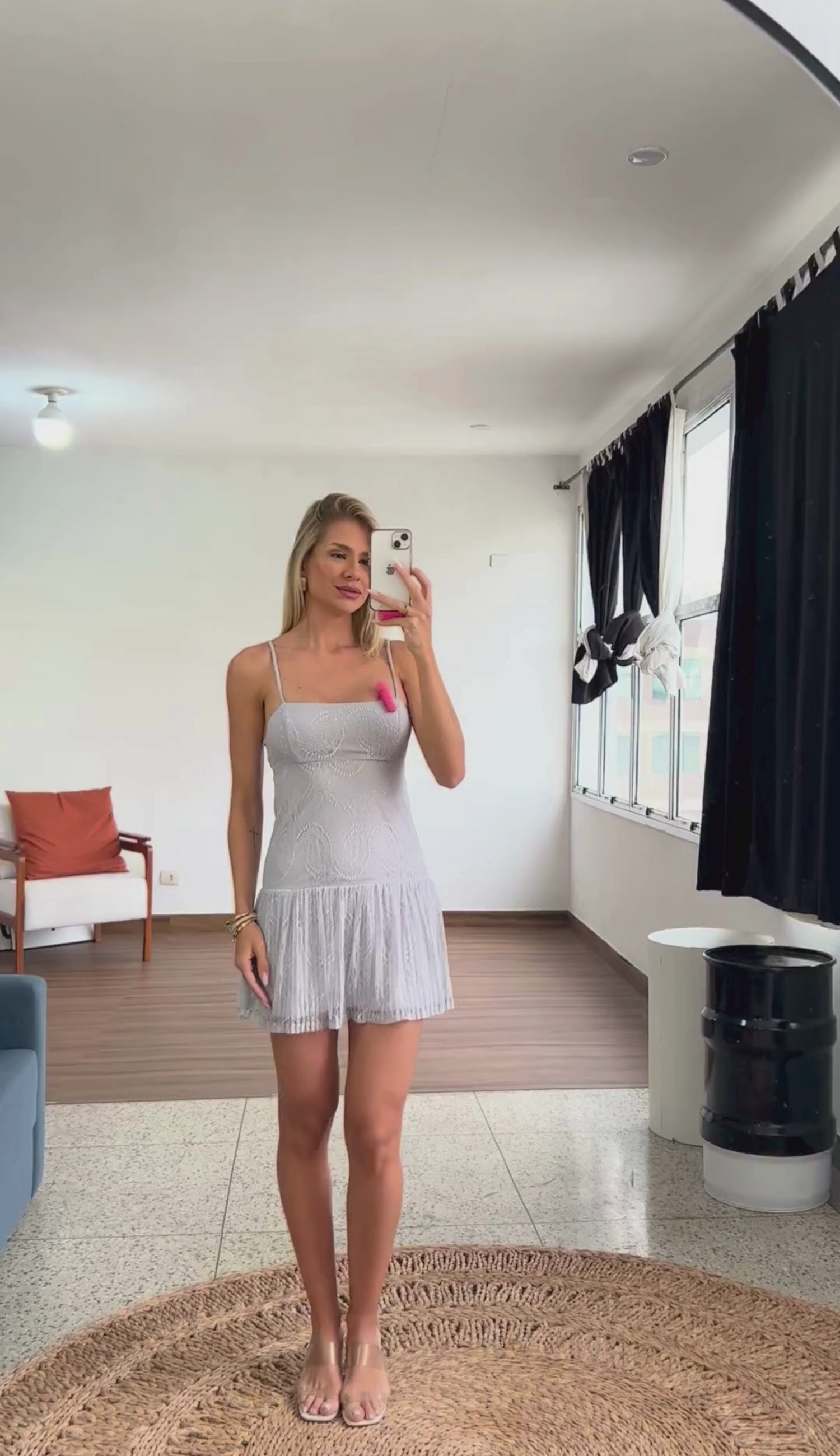 Vestido curto confeccionado em renda com forro. Possui modelagem ajustada, decote reto com recortes que modelam o busto, marcação logo abaixo, estilo império; alcinhas reguláveis, recorte na altura do quadril com babadinho da saia plissado, fechamento traseiro por zíper invisível e lastex franzido nas costas para melhor ajuste ao corpo.