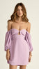 Vestido curto confeccionado em crepe leve texturizado com aspecto de linho e efeito amassadinho. Possui decote coração com silicone elástico interno, detalhe vazado no centro, recortes que modelam o busto, pala na cintura, mangas bufantes com elástico nos ombros e nos punhos, estilo ciganinha; saia soltinha e lastex franzido nas costas para melhor ajuste ao corpo.
