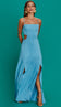 Vestido longo com forro, confeccionado em viscose mais encorpada com toque e aspecto de linho. Possui decote reto; alcinhas reguláveis; busto fixo à saia apenas por recorte frontal, deixando toda a região da cintura à mostra; lastex franzido nas costas; fechamento traseiro por zíper invisível na saia e fendas frontais.