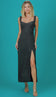 Vestido longuete confeccionado em crepe de alfaiataria. Possui decote princesa, alças mais largas com reguladores de metal, recortes no busto, pala com recortes na cintura e barbatanas no centro para estruturar a peça, fechamento lateral por zíper invisível, lastex nas costas para maior conforto e saia em "A" com forro e fenda lateral.