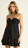 Vestido curto sem mangas confeccionado em crepe texturizado com aspecto de gaze e efeito amassadinho. Possui forro na saia; tecido duplo no busto para não ficar transparente; decote coração com elástico silicone interno para maior segurança e nó em transpasse no centro do busto; modelagem império com marcação abaixo do busto e saia soltinha logo em seguida; duas camadas de babadinhos franzidos na barra e lastex nas costas para melhor ajuste ao corpo.