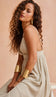 Vestido longo confeccionado em crepe leve texturizado com forro na saia. Possui decote em V com tecido duplo no busto para não ficar transparente, alcinhas duplas reguláveis, fechamento traseiro por tirinhas transpassadas para ajuste e amarração e zíper invisível, pala logo abaixo do busto com detalhes em vivo, franzidinhos na cintura e saia ampla com recorte franzido também.