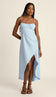Vestido mullet confeccionado em poliéster com aspecto de liocel e efeito amassadinho. Possui decote princesa com busto franzido, pala na cintura que modela o corpo, alcinhas reguláveis, abertura nas costas com tirinhas para amarração em um lindo decote, fechamento traseiro por zíper invisível e abertura frontal ampla na saia assimétrica em diagonal, que dá um lindo movimento à peça e cria um ar super sensual ao look. O tecido garante praticidade e elegância, pois, devido à sua composição, não amassa facilmente e o aspecto de 'tecido nobre' dá um ar sofisticado ao look.