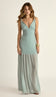 Vestido longo confeccionado em tule com forro. Possui decote em V, alças trançadas com reguladores de metal, fechamento traseiro por zíper invisível e modelagem justinha até a região do quadril, aonde conta com um recorte com franzidinhos na saia, deixando a saia bem soltinha e leve. Essa região da saia não tem forro e fica com uma transparência muito charmosa e delicada, criando um aspecto ainda mais fluido e romântico.