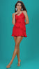 Vestido curto confeccionado em linho com forro. Possui decote em V com babados na frente, alcinhas reguláveis, fechamento lateral por zíper invisível, modelagem ajustada e babados diagonais na saia.