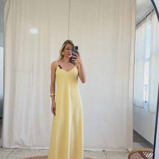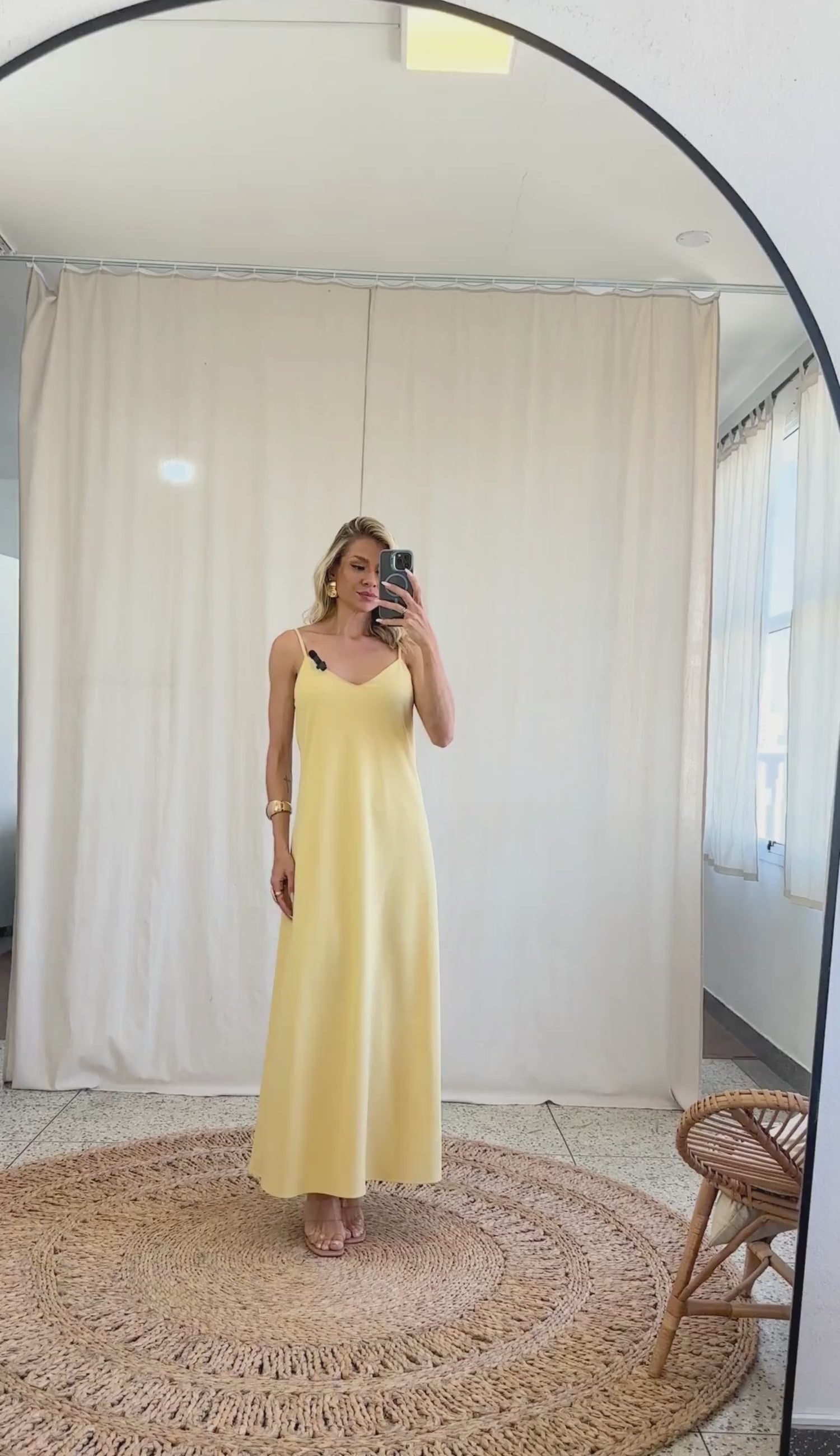 Vestido longo confeccionado em linho com forro. Possui modelagem solta, decote em V, alcinhas reguláveis. Modelo elegante, versátil e confortável, perfeito para todas as ocasiões.