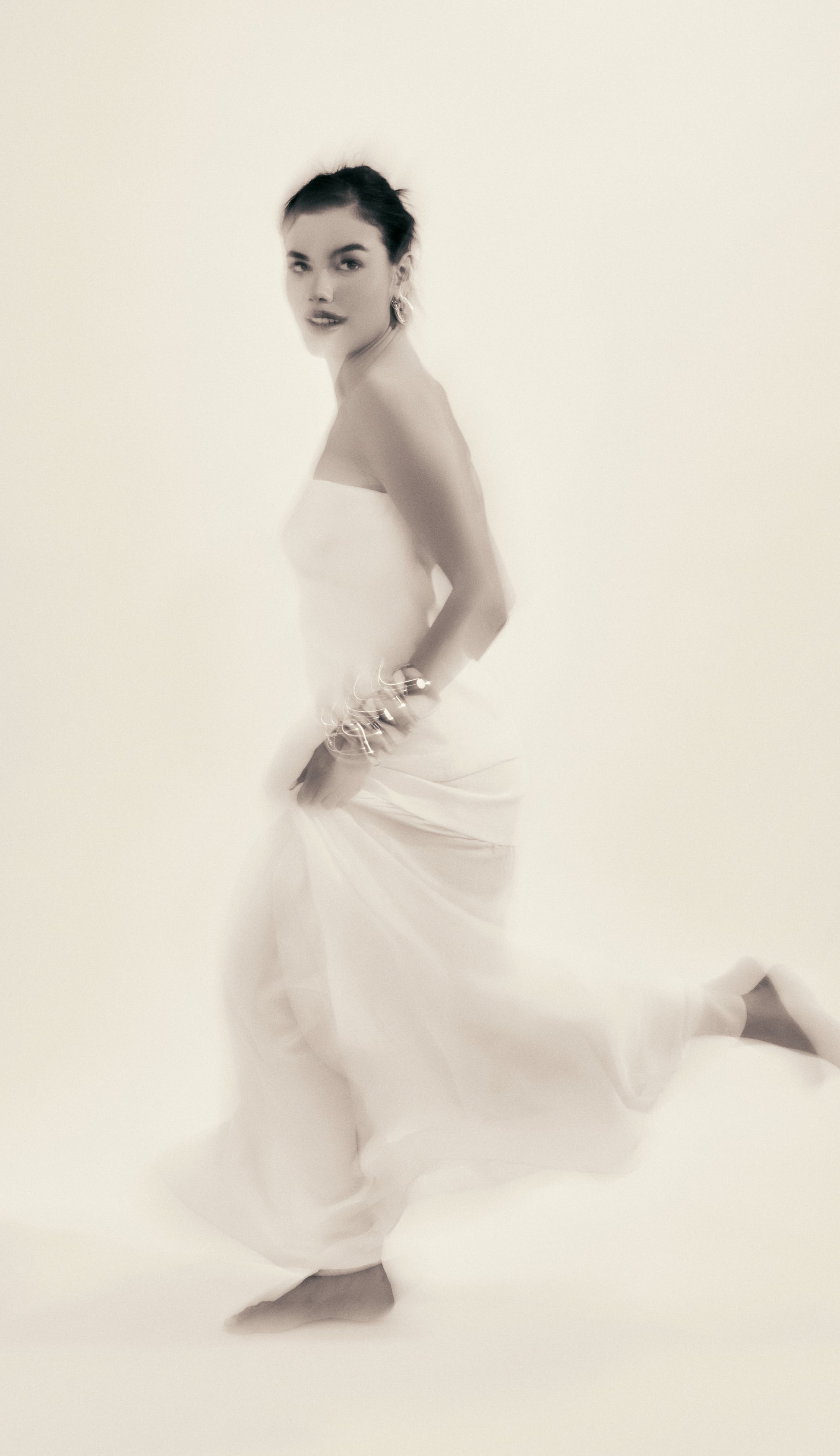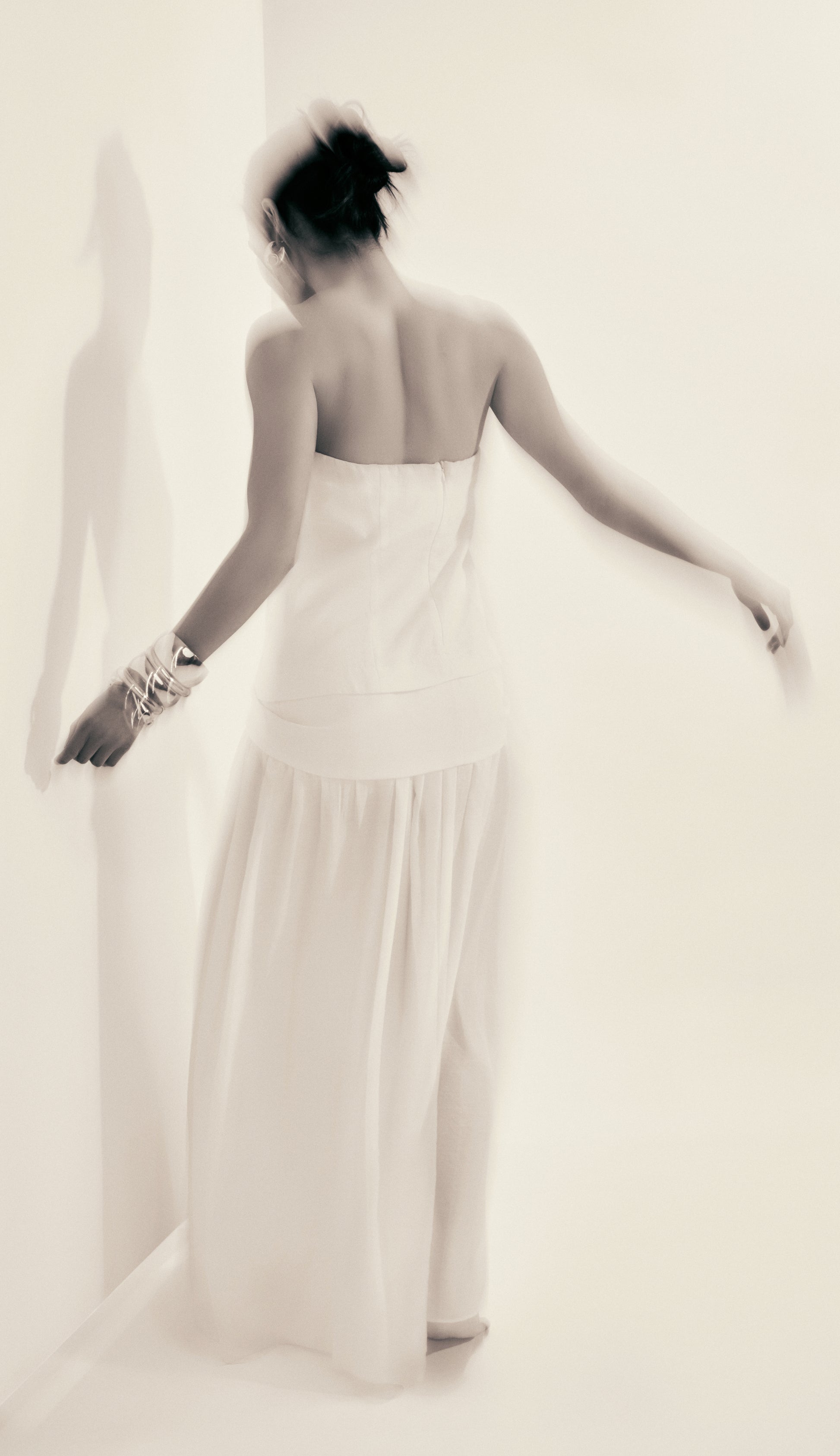 Vestido longo sem mangas e com forro; confeccionado em poliviscose texturizada com aspecto de linho e efeito amassadinho. Possui decote reto com silicone elástico interno para maior segurança, recortes no corpo da peça que modelam a silhueta, sendo bem justinho até a altura do quadril onde conta com recorte e duas palas sobrepostas sendo a última mais larga. Logo abaixo, tem uma saia franzidinha bem soltinha e fluida que dá um frescor ao look e nas costas, possui o fechamento por zíper invisível.