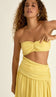 Vestido longo sem mangas confeccionado em crepe leve com forro. Possui decote coração com elástico silicone interno para maior segurança e franzidinhos no centro; busto fixo ao corpo somente na latral da peça e todo o restante solto, deixando a cintura à mostra e um efeito caidinho com drapeados laterais na altura do quadril; detalhe trançado no mesmo tecido fixo à cintura, Franzidinhos na saia, apartir do recorte do quadril, lastex franzido nas costas do busto e fechamento lateral por zíper invisível.