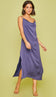 Vestido midi confeccionado em alfaiataria acetinada. Possui modelagem evasê, decote degagê, alcinhas reguláveis, fechamento lateral por zíper invisível, barra assimétrica, sobreposição frontal com tirinhas para amarrar nas costas, deixando a cintura marcada. Um modelo elegante e leve que pode ser usado em propostas mais casuais ou até mesmo eventos mais chiques.