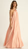 Vestido longo frente única confeccionado em viscolinho texturizado com forro. Possui modelagem soltinha, decote halter com franzidinhos, tirinha embutida com ponteiras de metal em formato de conchinha para amarração na nuca e decote nas costas com tirinha embutida também para ajuste e amarração com as mesmas ponteiras de conchinha.