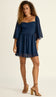 Vestido curto confeccionado em crepe com forro. Possui decote princesa, elástico franzido nos ombros permitindo que as mangas sejam usadas no lugar, ou em estilo ciganinha; pala e recortes na região do busto que modelam a peça, saia franzidinha, mangas sino 7/8 e lastex nas costas para melhor ajuste ao corpo.